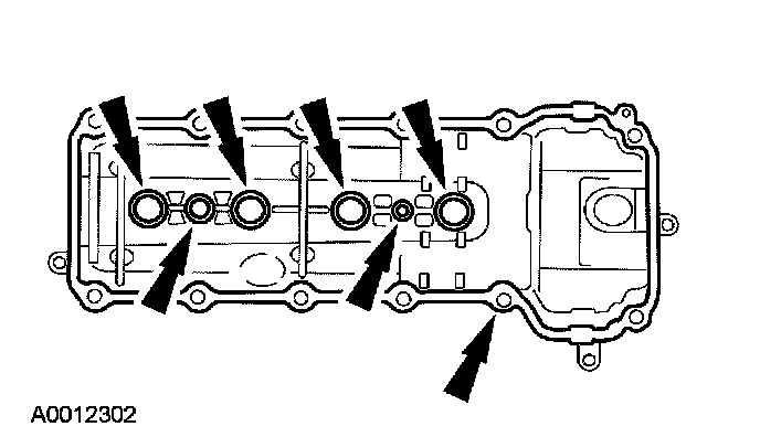 NOTE: If the valve covers are not secured within 4 minutes of sealant application, the sealant must be removed and the sealing area cleaned with metal surface cleaner. Allow to dry until there is no sign of wetness, or 4 minutes, whichever is longer. Failure to follow this procedure can cause future oil leakage.