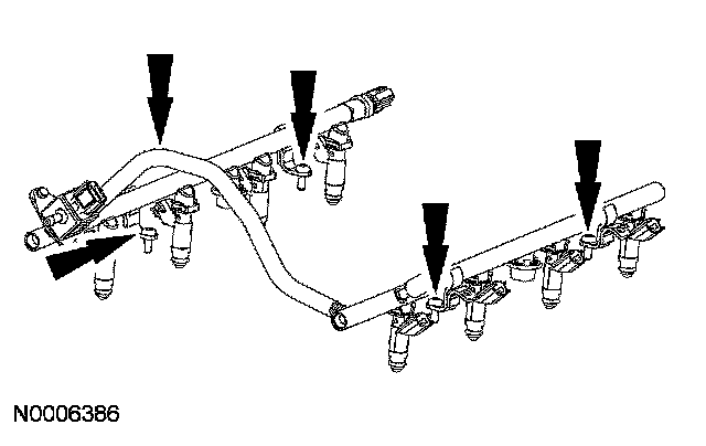 77. Install the fuel rail and injector assembly and the 4 bolts.