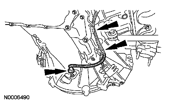 91. Connect the CKP sensor electrical connector and wiring harness retainers.