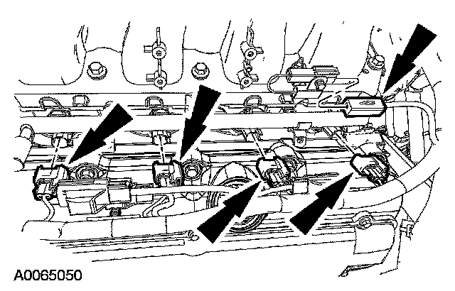 Connect the 8 fuel injectors and the 2 radio interference capacitor electrical connectors.