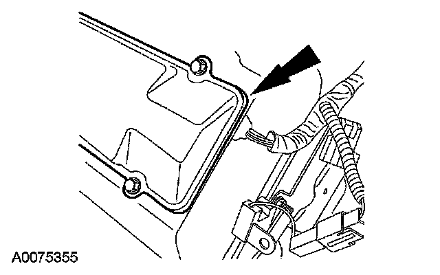 Lift up the wire harness and apply a 12.7 mm (0.5 inch) bead of silicone sealer in the notch of the valve cover.