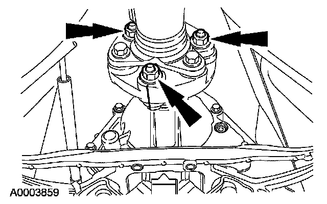 45. CAUTION: Install the bolts, washers and nuts in their original positions or driveshaft NVH can occur. Install the driveshaft flex coupling bolts with the head of the bolt seated against the flange and the nuts seated against the flex coupling.