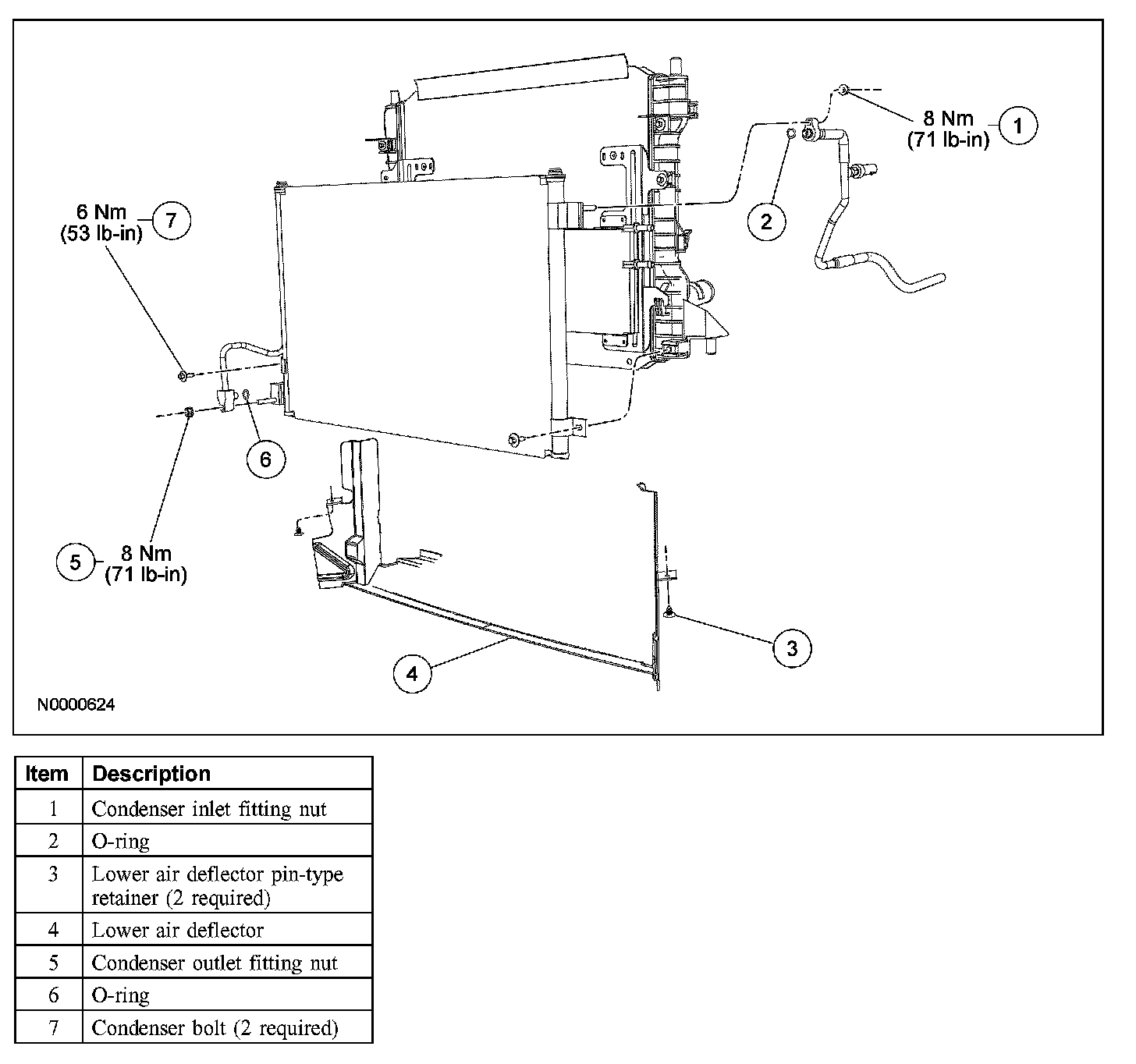 NOTE: Installation of a new receiver/drier is not required when repairing the air conditioning system except when there is physical evidence of contamination from a failed A/C compressor or damage to the receiver/drier.