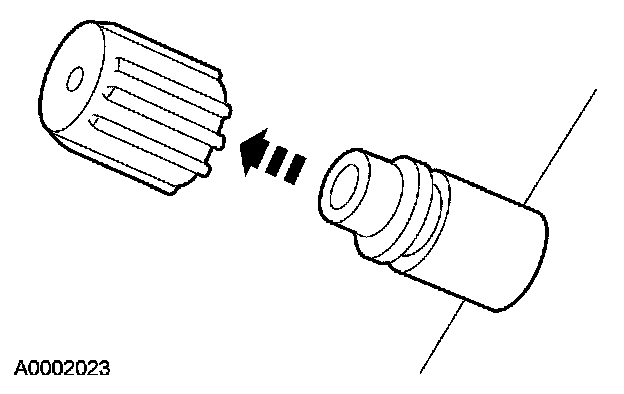 2. Remove the A/C charging valve cap from the high-pressure service gauge port valve.