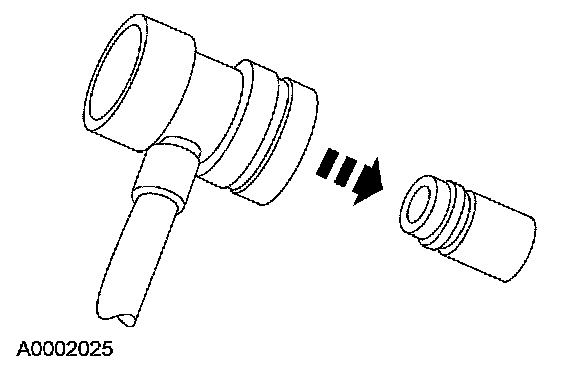 6. Remove the A/C charging valve cap from the low-pressure service gauge port valve.