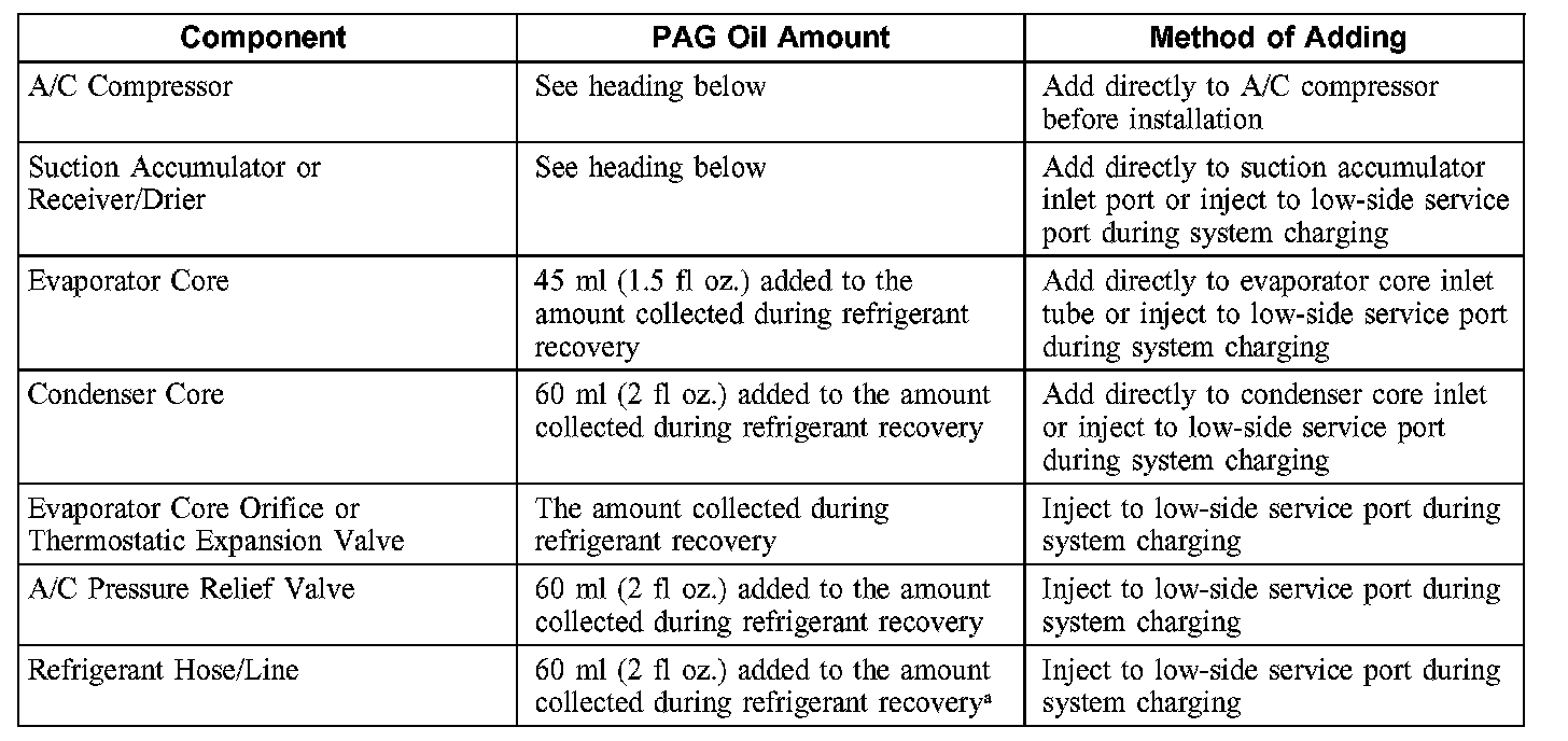 Refrigerant Oil Adding for New Suction Accumulator or Receiver/Drier Installation
