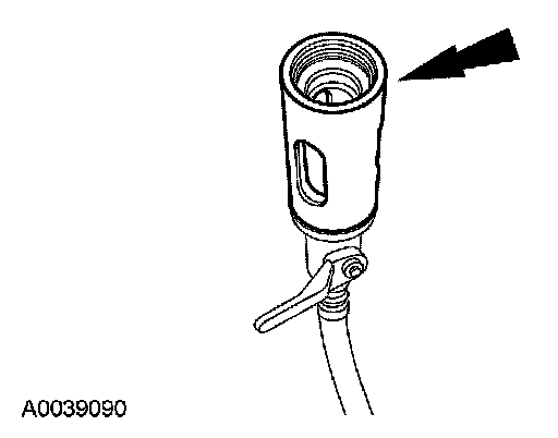 5. Install the dye/lubricant injector between the low-side service gauge port valve and the refrigerant service station or manifold gauge set.