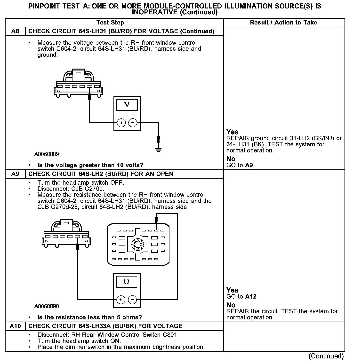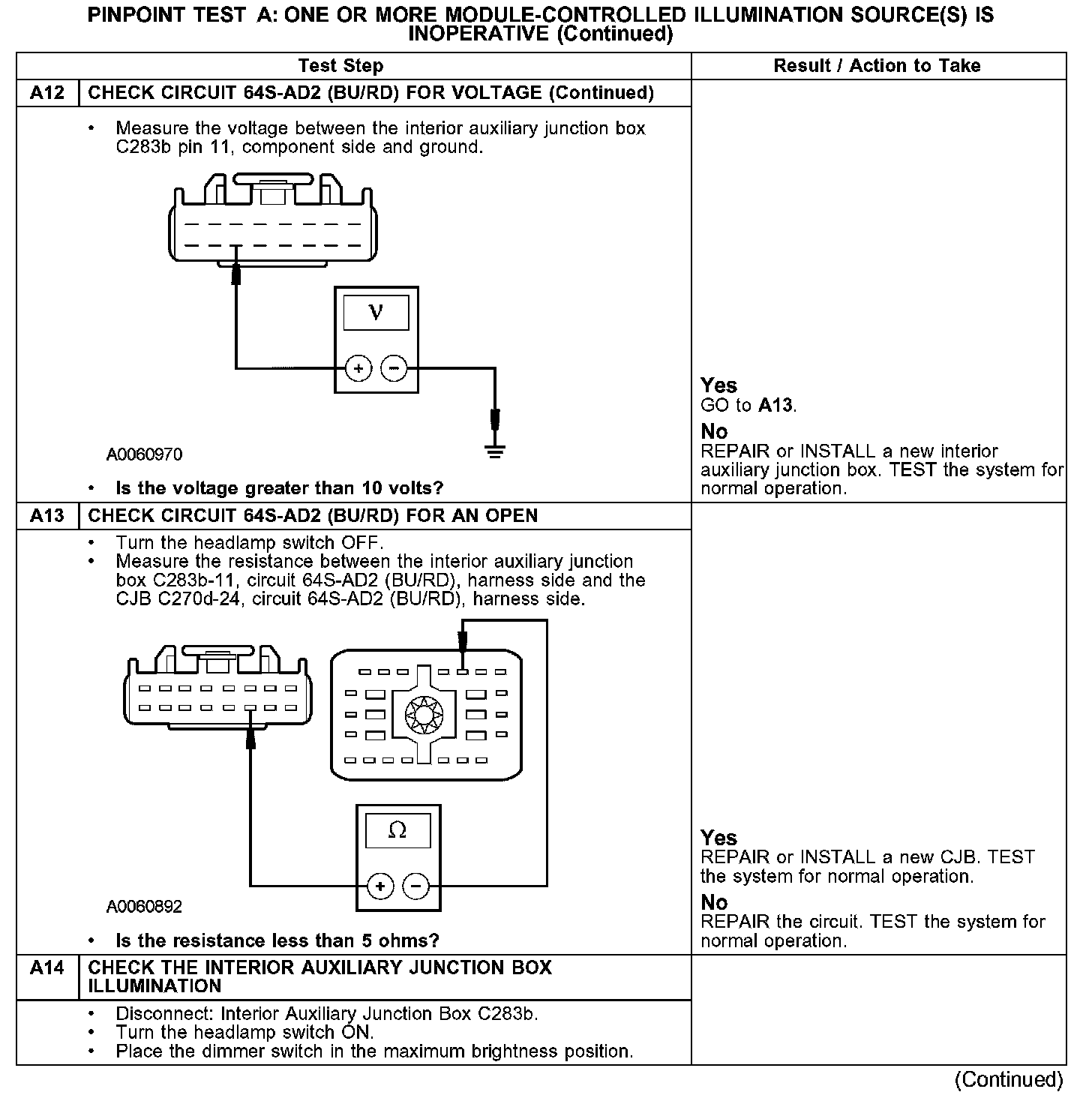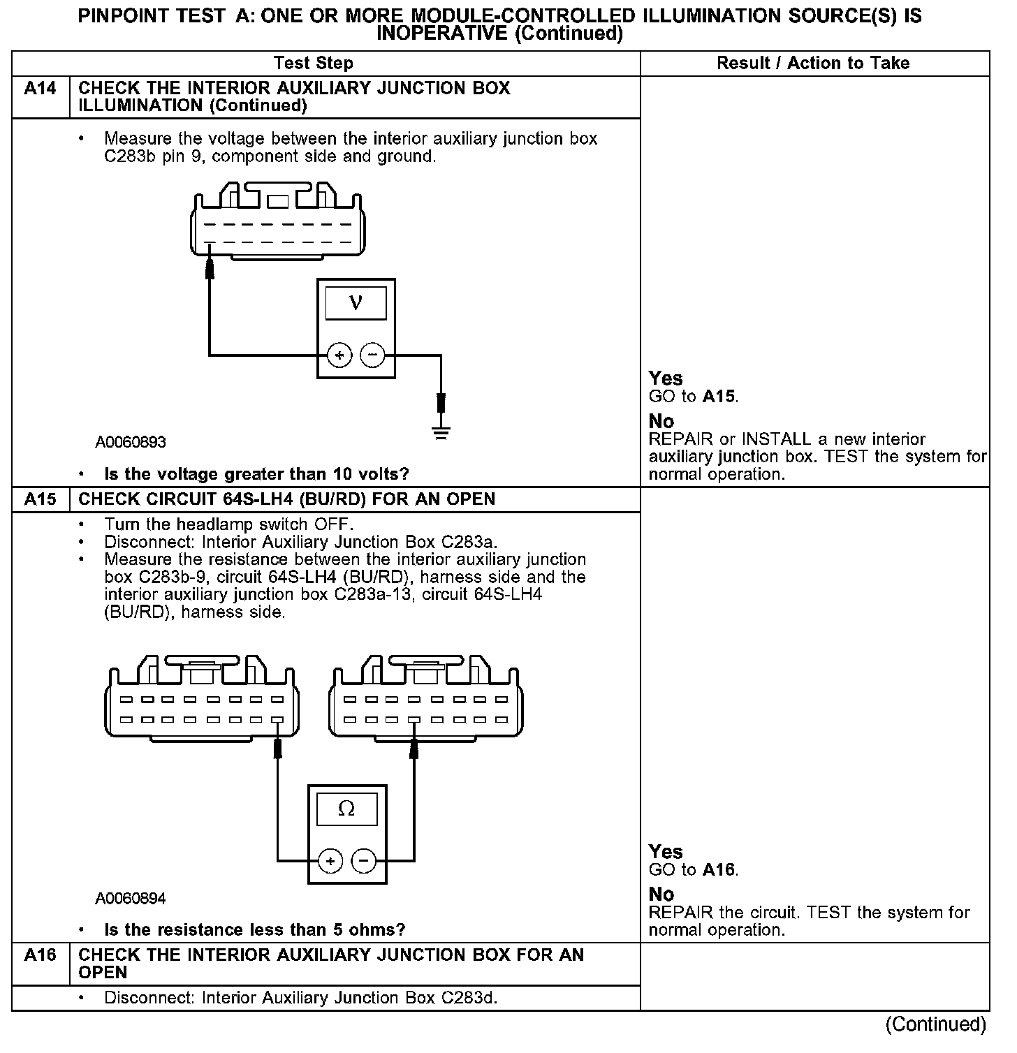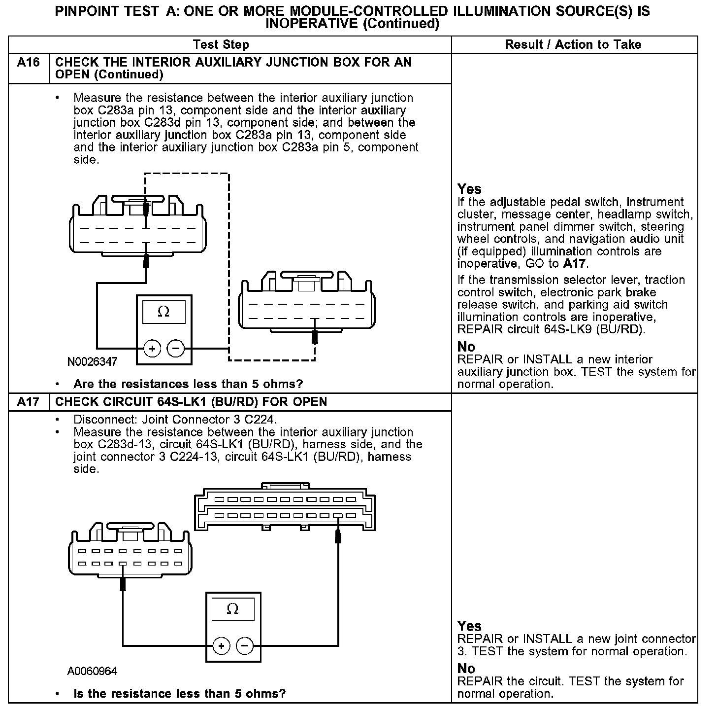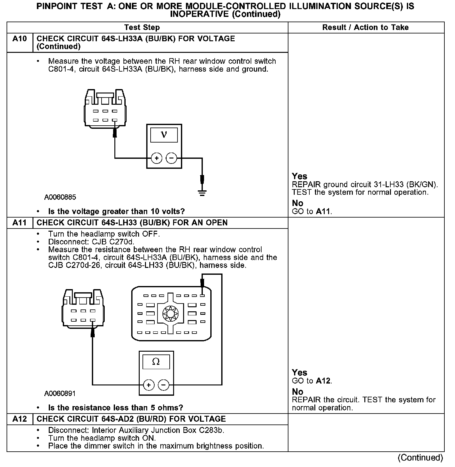 PINPOINT TEST A: ONE OR MORE MODULE-CONTROLLED ILLUMINATION SOURCE(S) IS INOPERATIVEA1-A2: