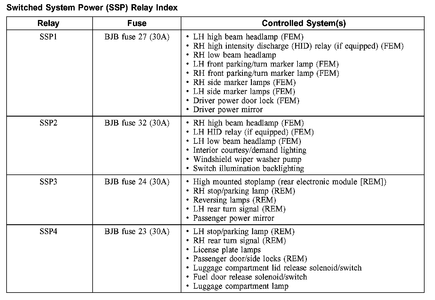 Switched System Power (SSP) Relay Index: