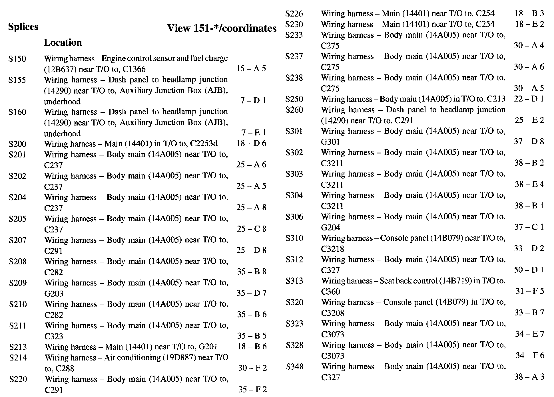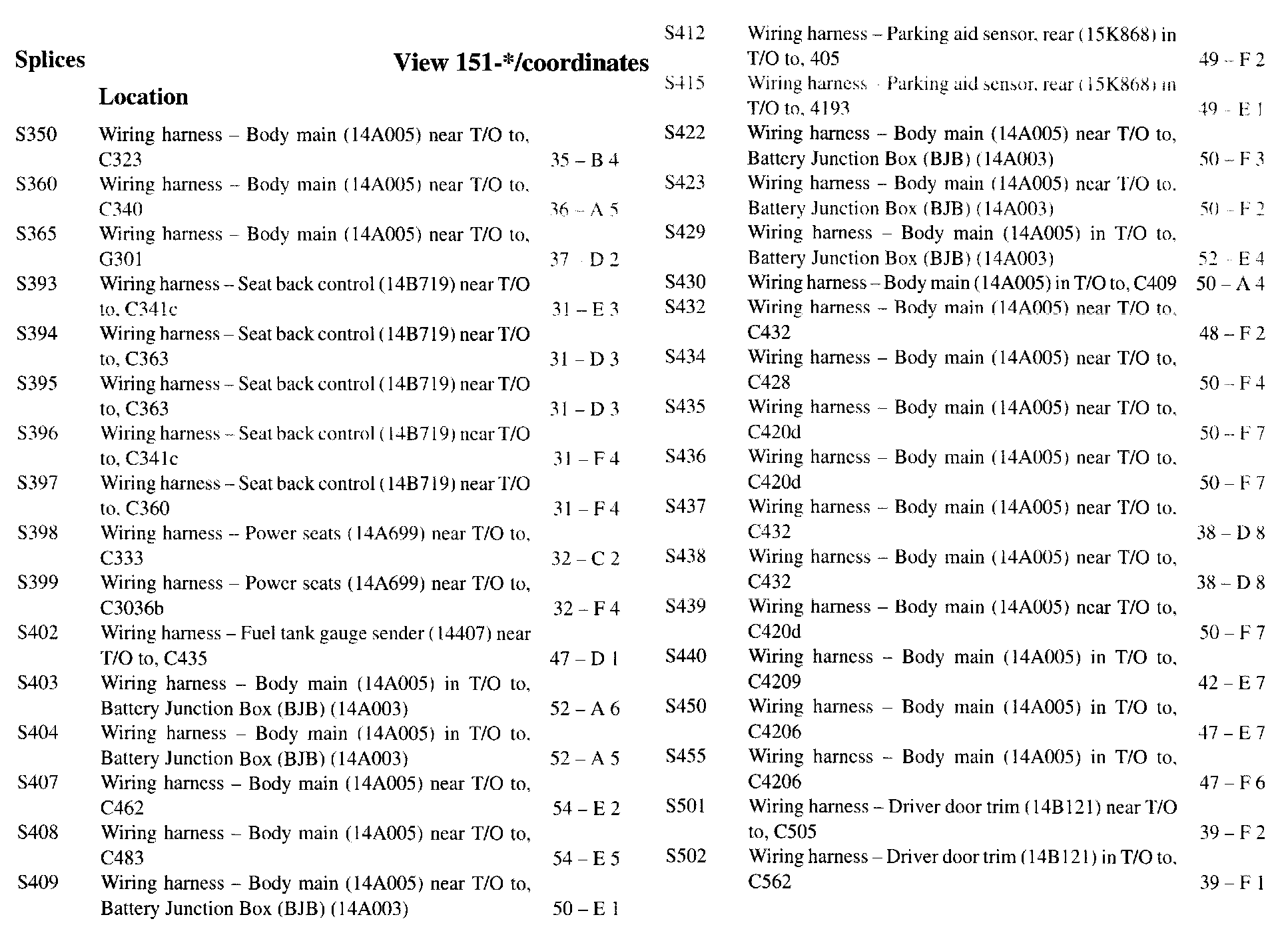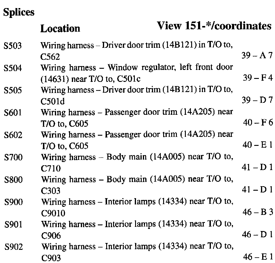 If a link on the Splices Location Index to a View is not provided, that means that the Splices and/or View in question does NOT apply to the vehicle model selected.