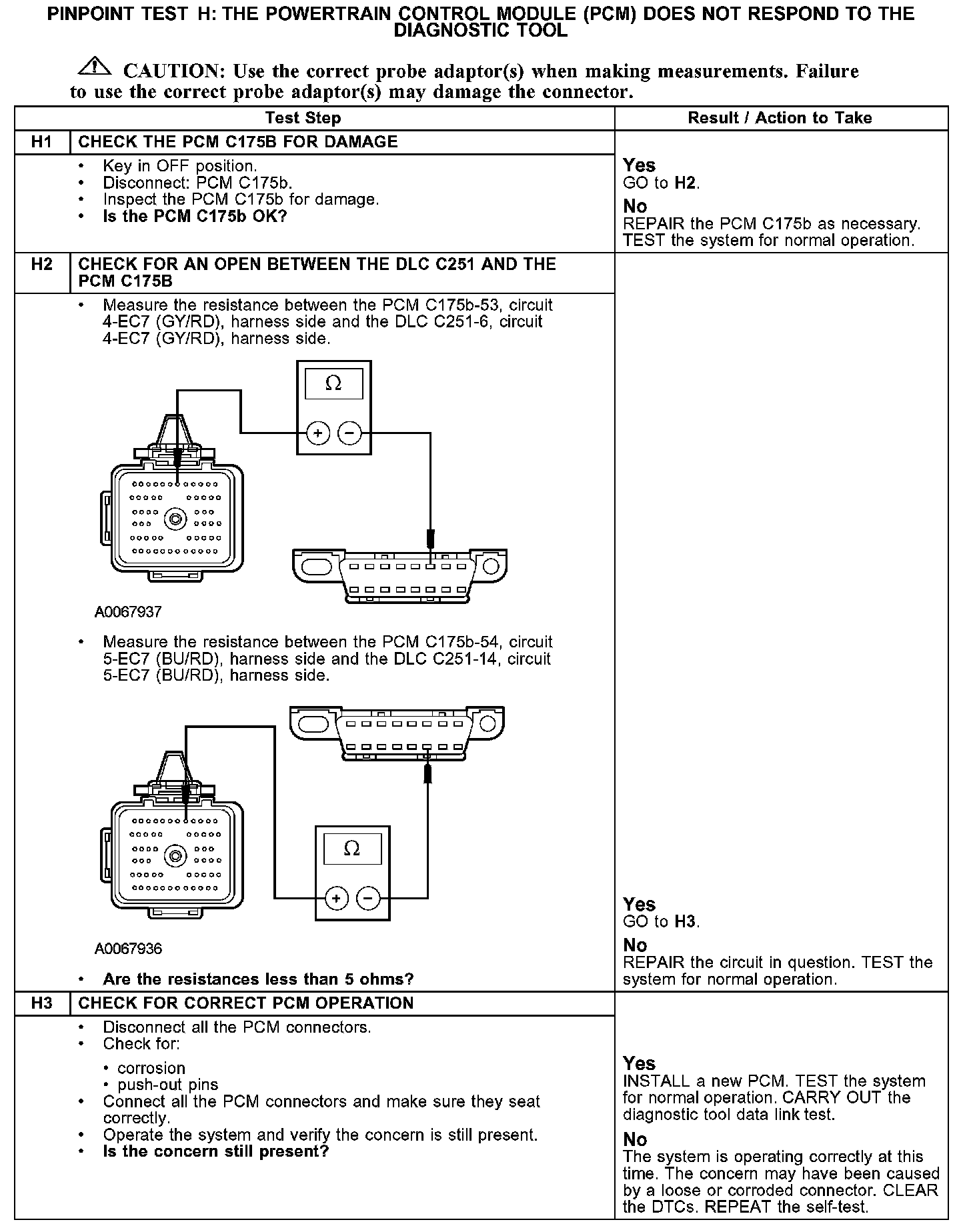 PINPOINT TEST H: THE POWERTRAIN CONTROL MODULE (PCM) DOES NOT RESPOND TO THE DIAGNOSTIC TOOL