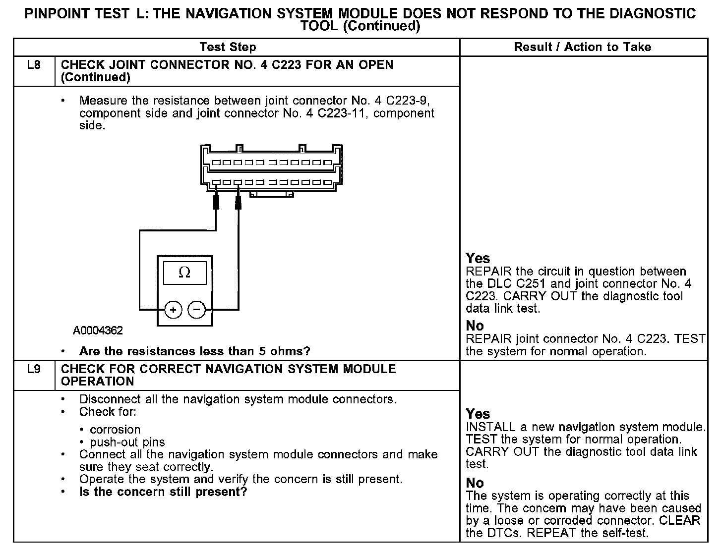PINPOINT TEST L: THE NAVIGATION SYSTEM MODULE DOES NOT RESPOND TO THE DIAGNOSTIC TOOLL1-L2: