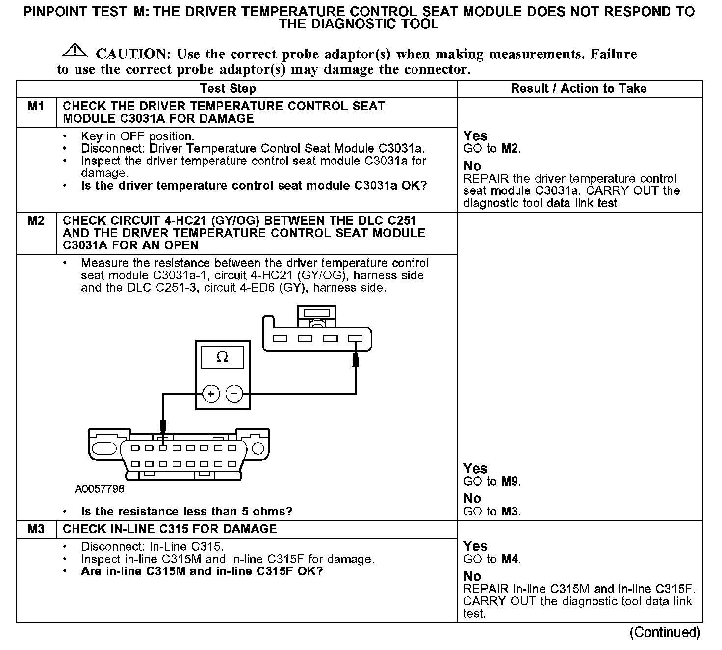 PINPOINT TEST M: THE DRIVER TEMPERATURE CONTROL SEAT MODULE DOES NOT RESPOND TO THE DIAGNOSTIC TOOLM1-M3: