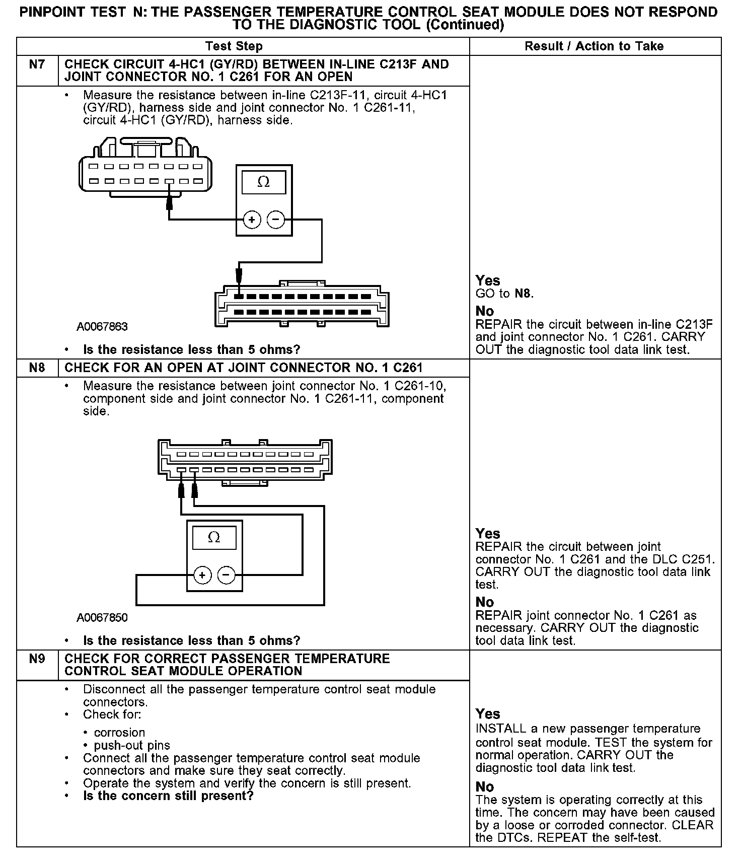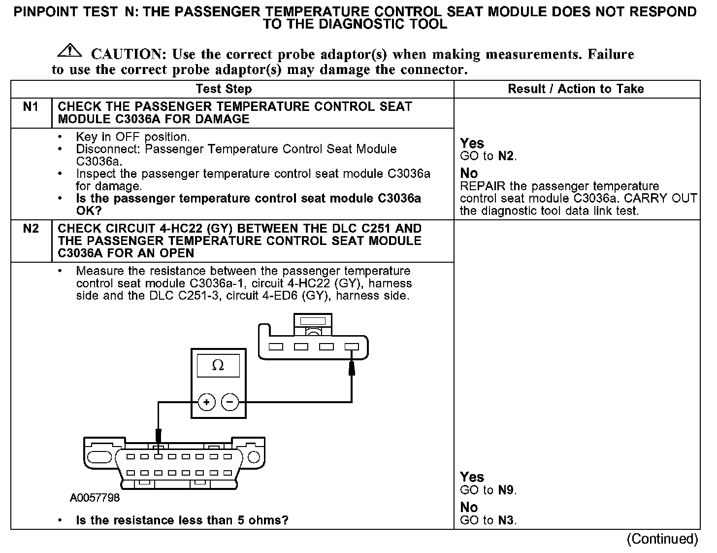 PINPOINT TEST N: THE PASSENGER TEMPERATURE CONTROL SEAT MODULE DOES NOT RESPOND TO THE DIAGNOSTIC TOOLN1-N2:
