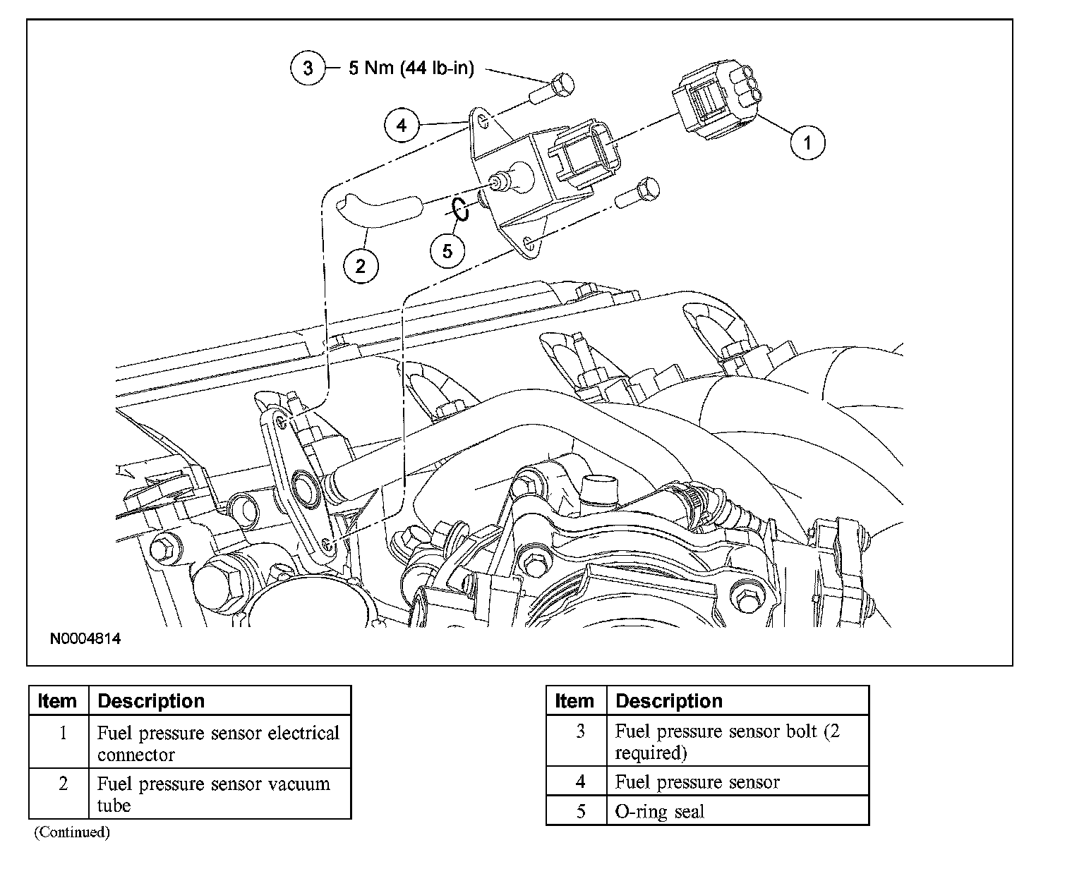4. Disconnect the fuel pressure sensor electrical connector and vacuum tube.