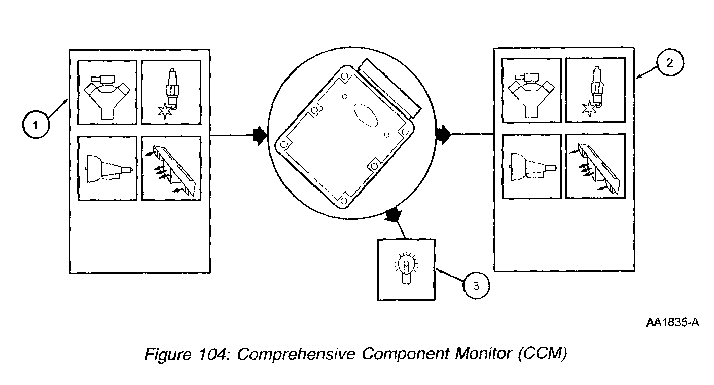 The following is an example of some of the input and output components monitored by the CCM. The component monitor may belong to the engine, ignition, transmission, air conditioning, or any other PCM supported subsystem.