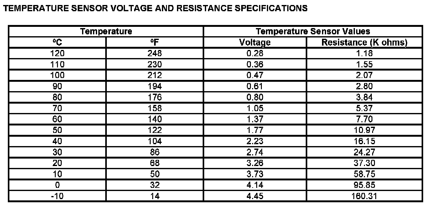 Voltage values calculated for VREF = 5 volts. These values can vary by 15% due to sensor and VREF variations.