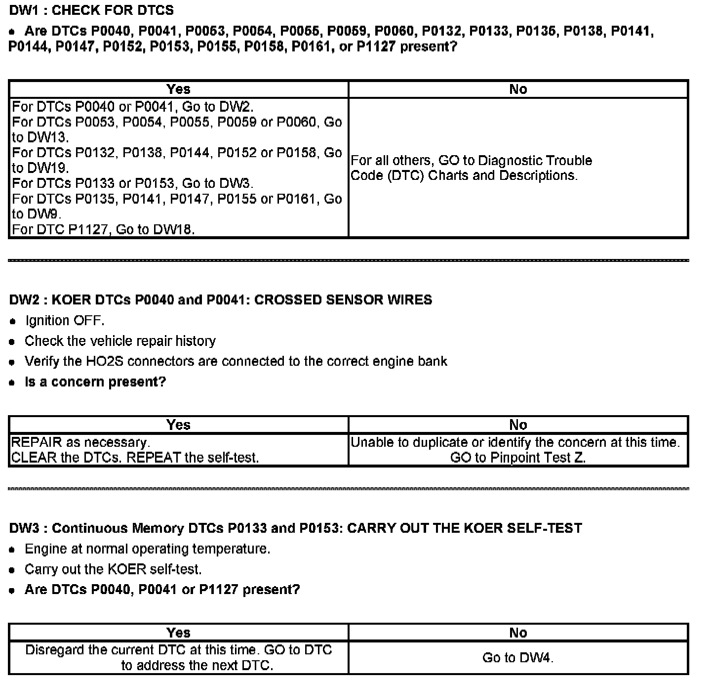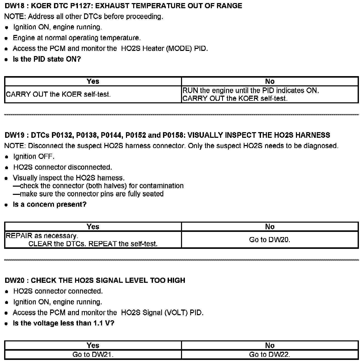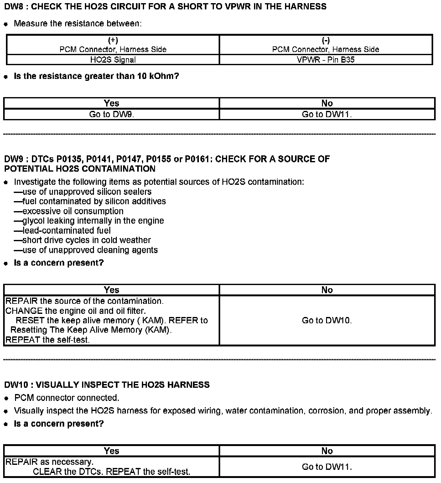 Tests DW: Heated Oxygen Sensor (HO2S)