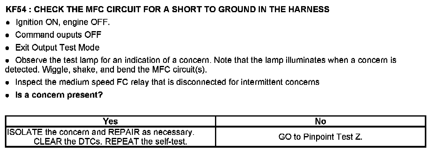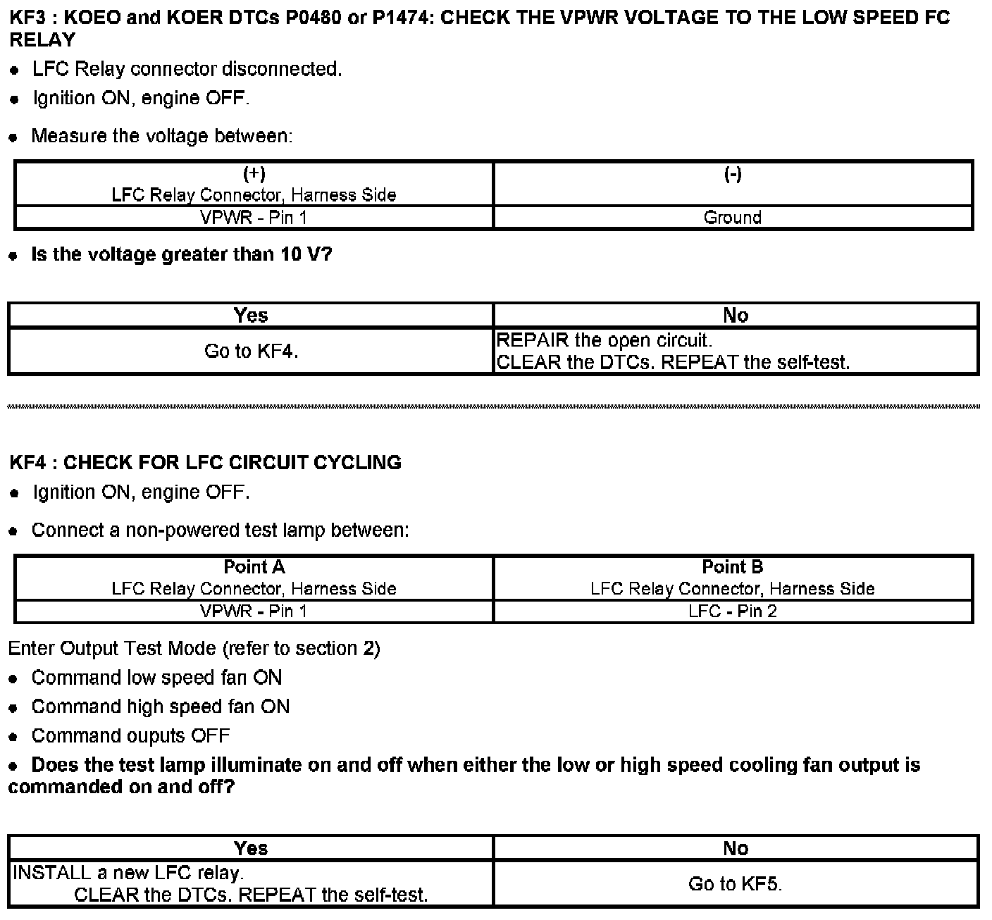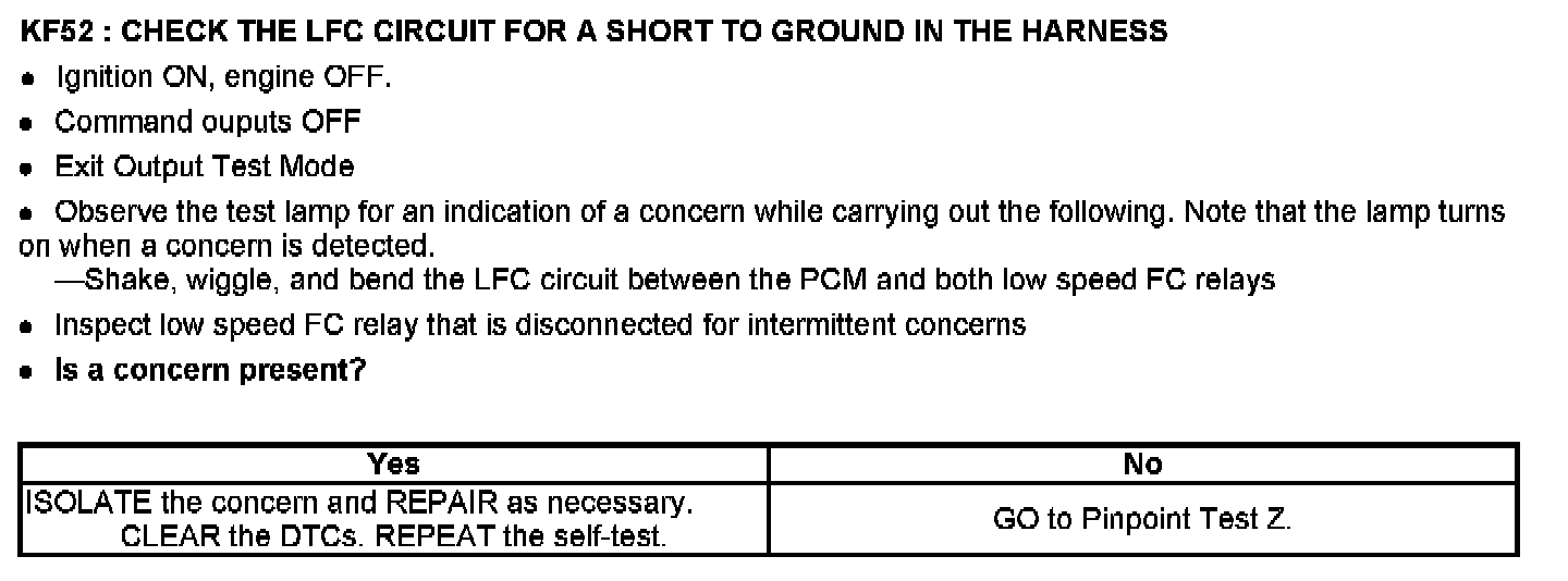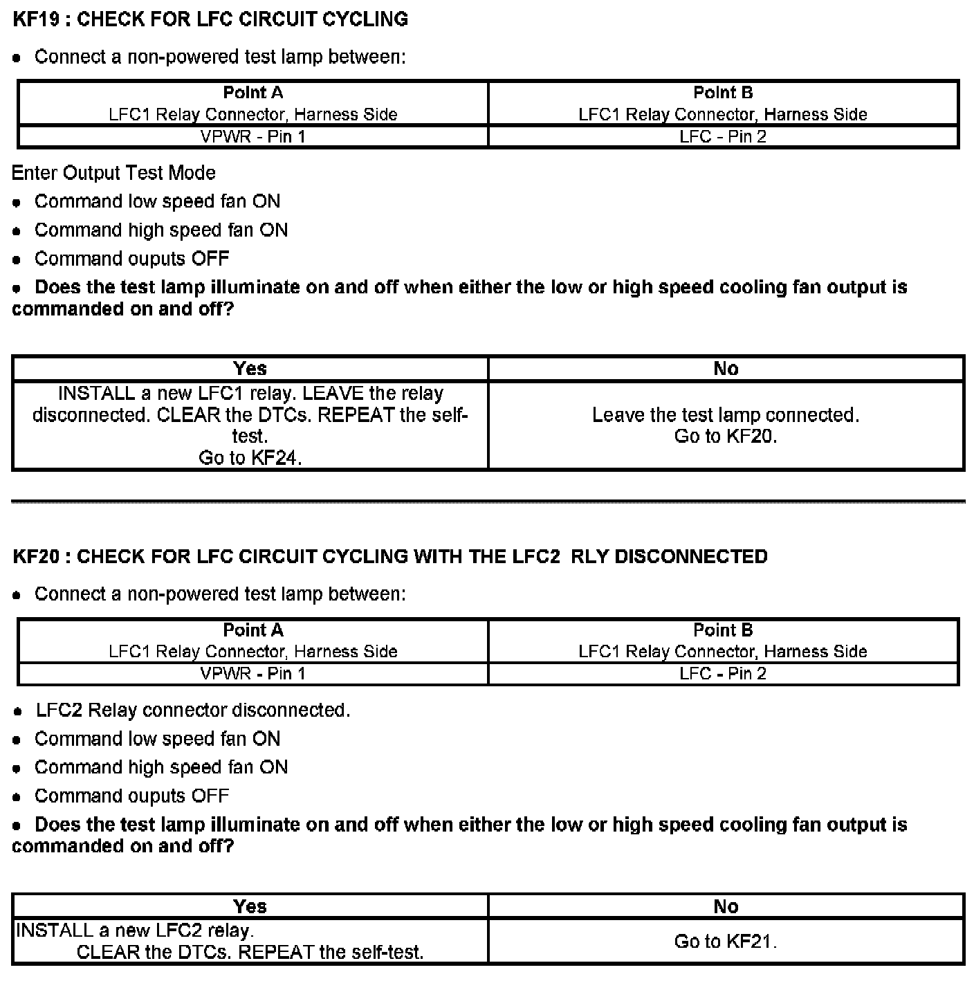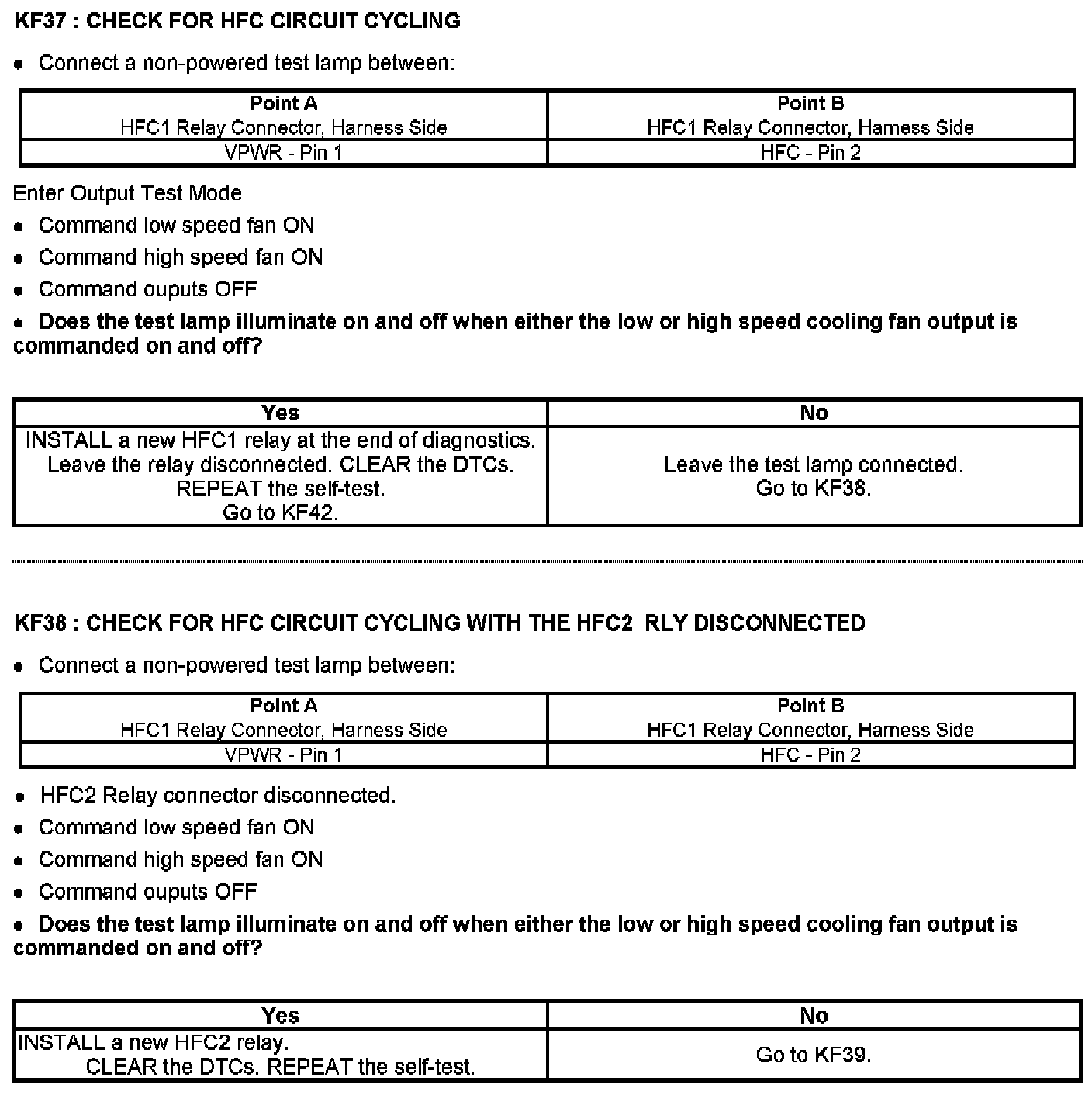 PINPOINT TEST KF: FAN CONTROL (FC) RELAYS