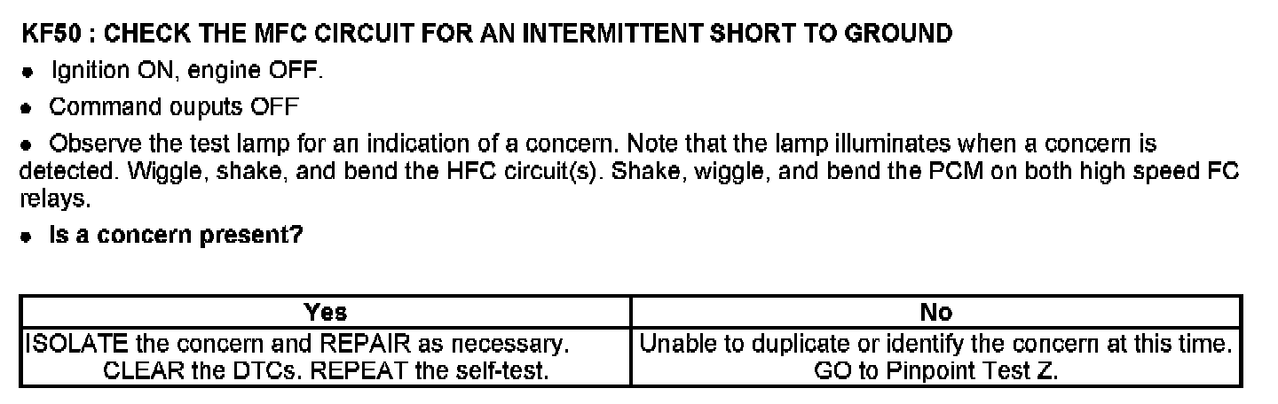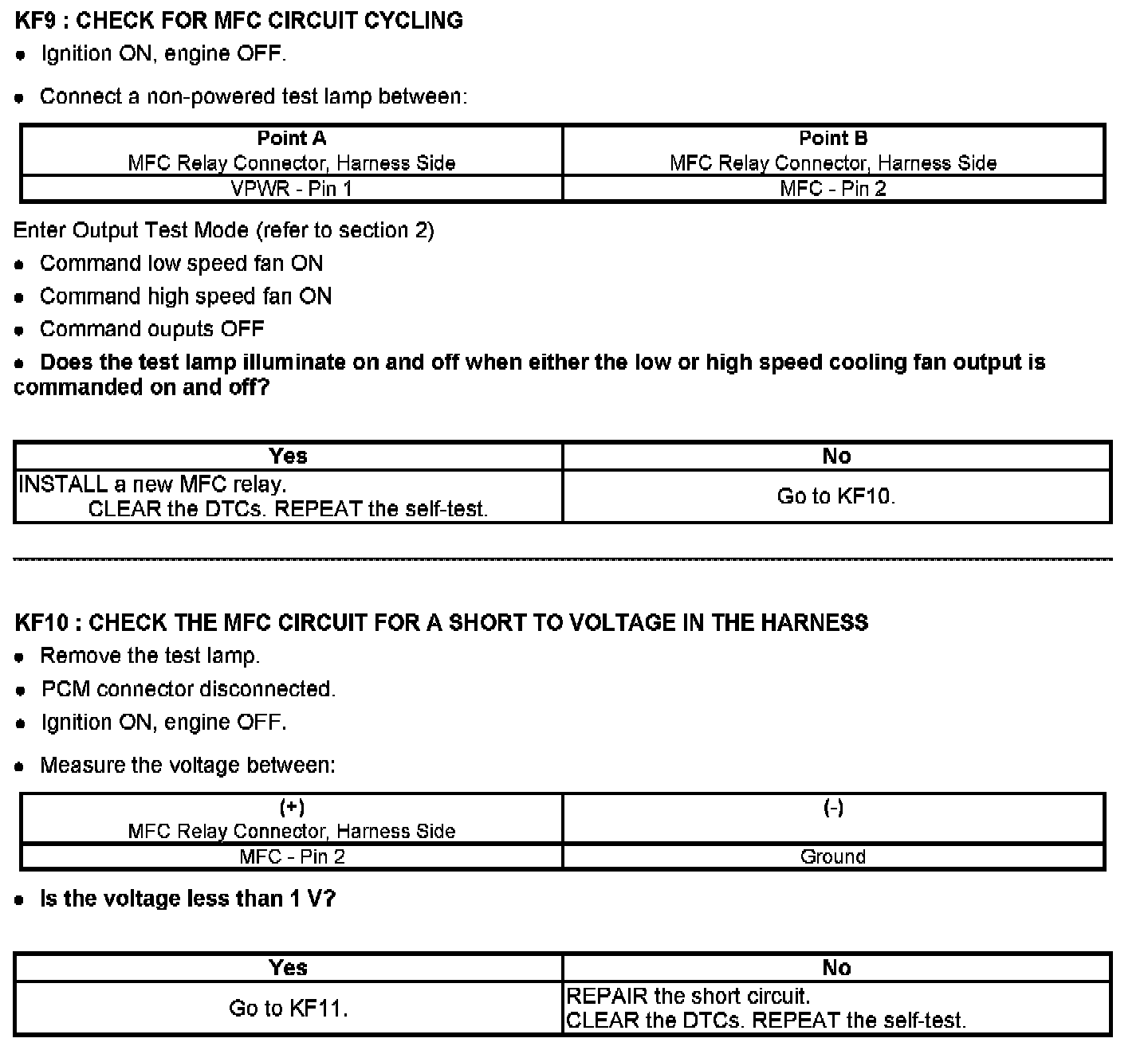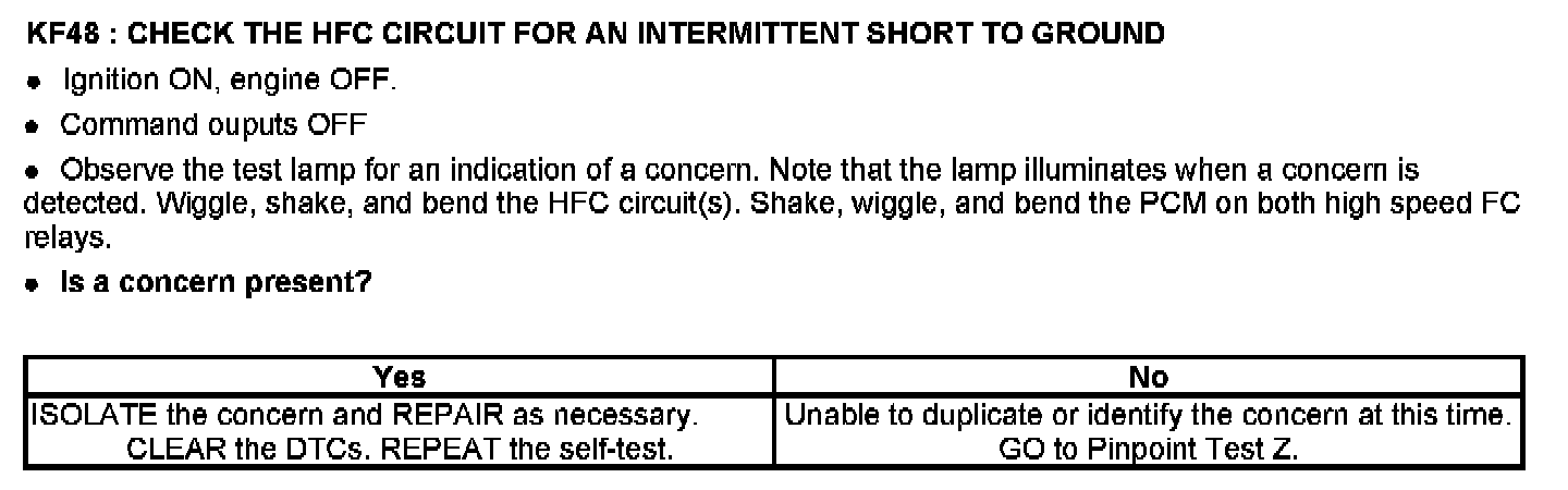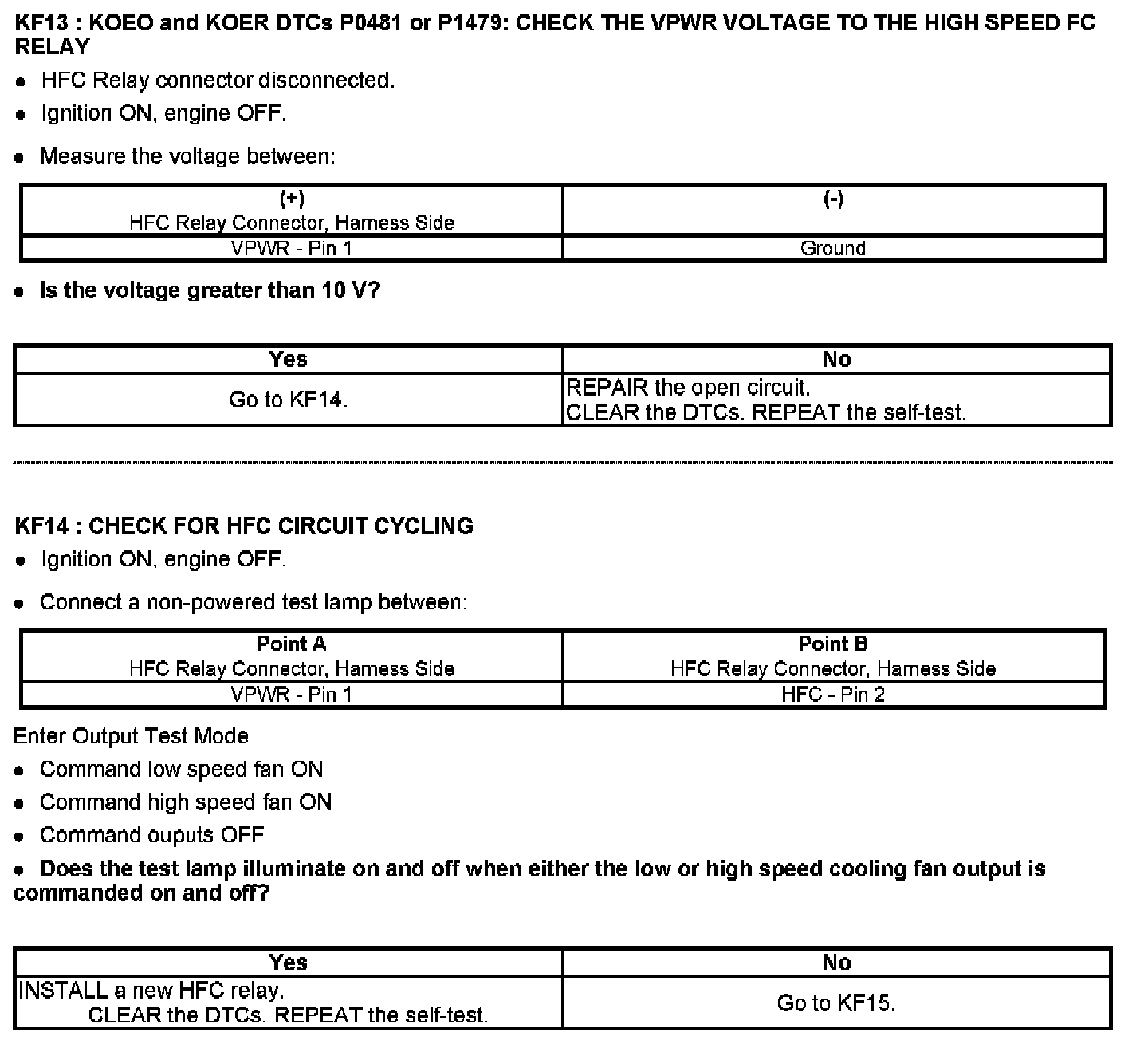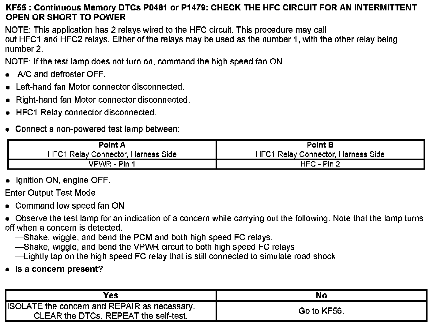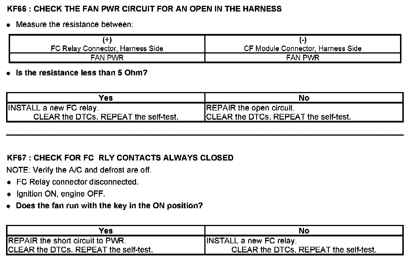 PINPOINT TEST KF: FAN CONTROL (FC) RELAYS