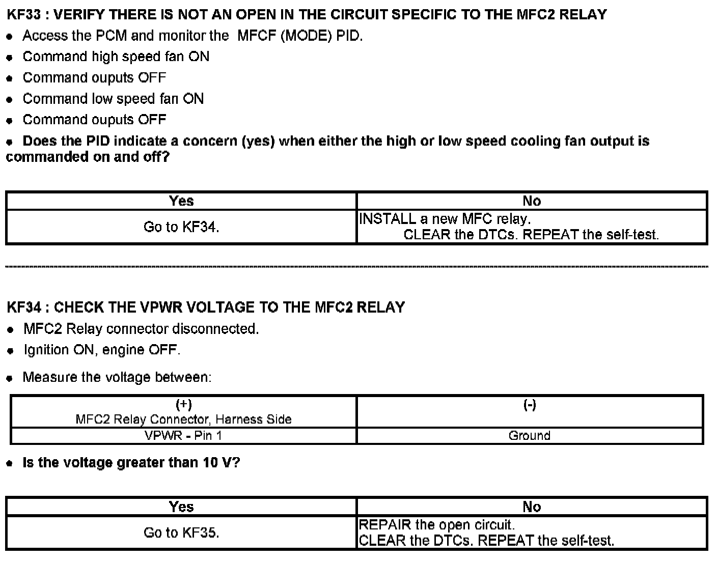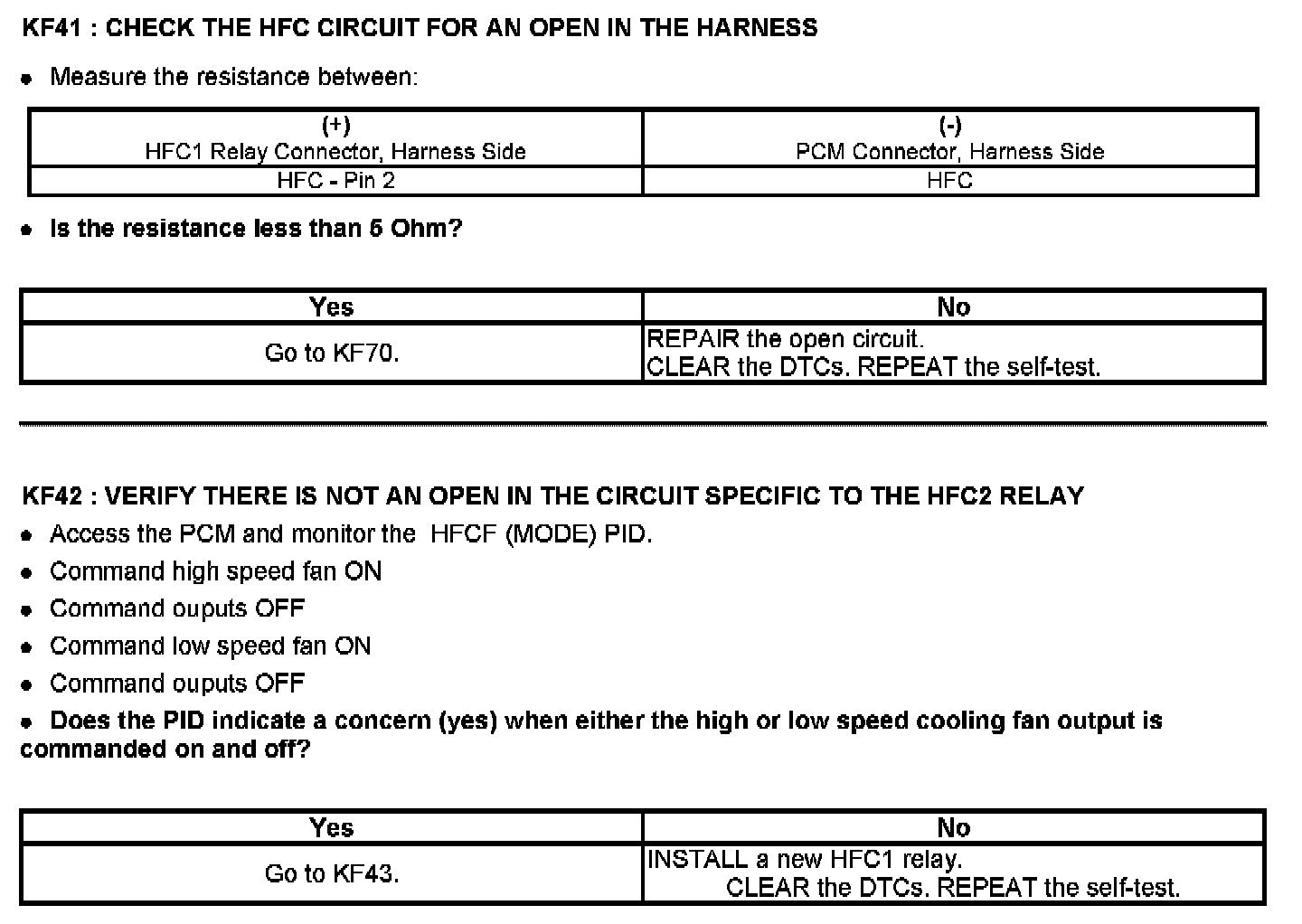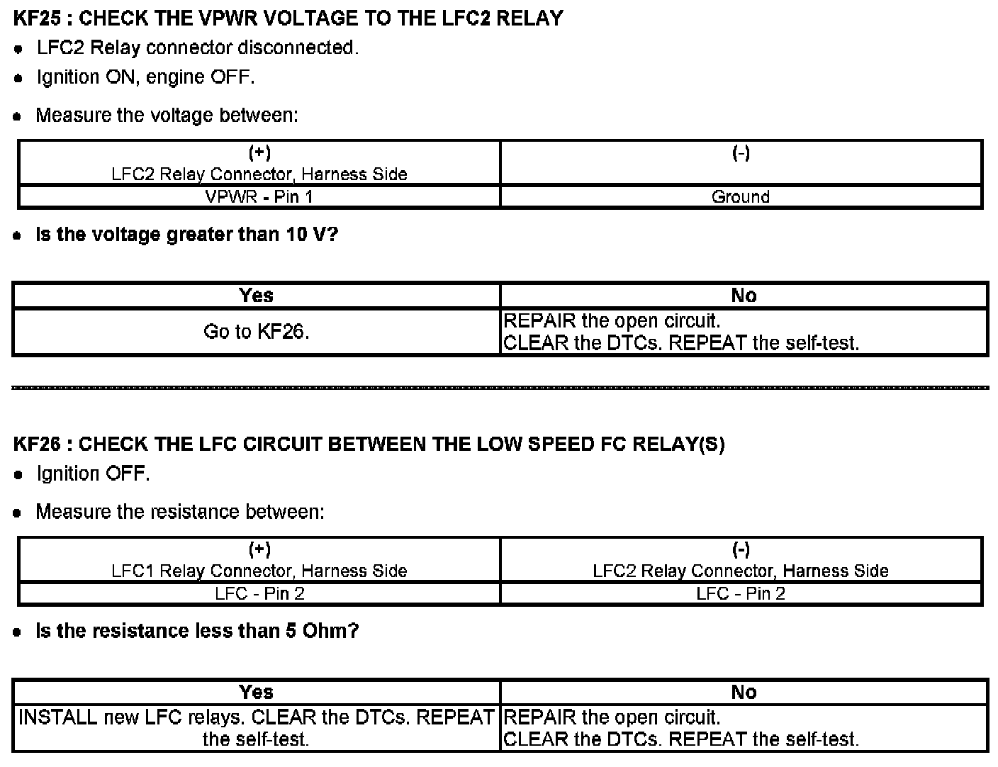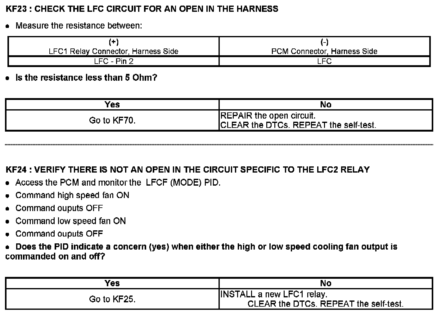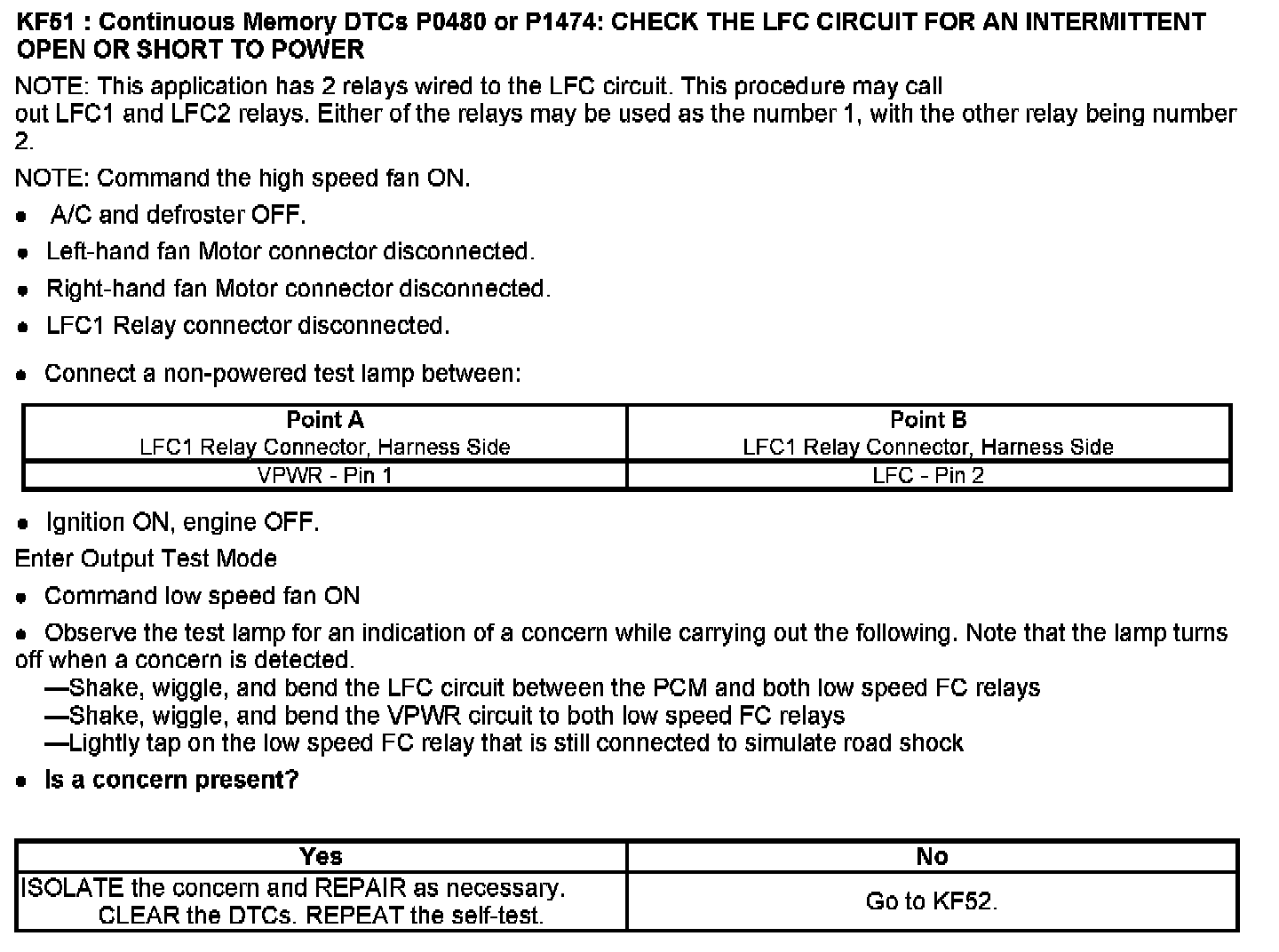 PINPOINT TEST KF: FAN CONTROL (FC) RELAYS