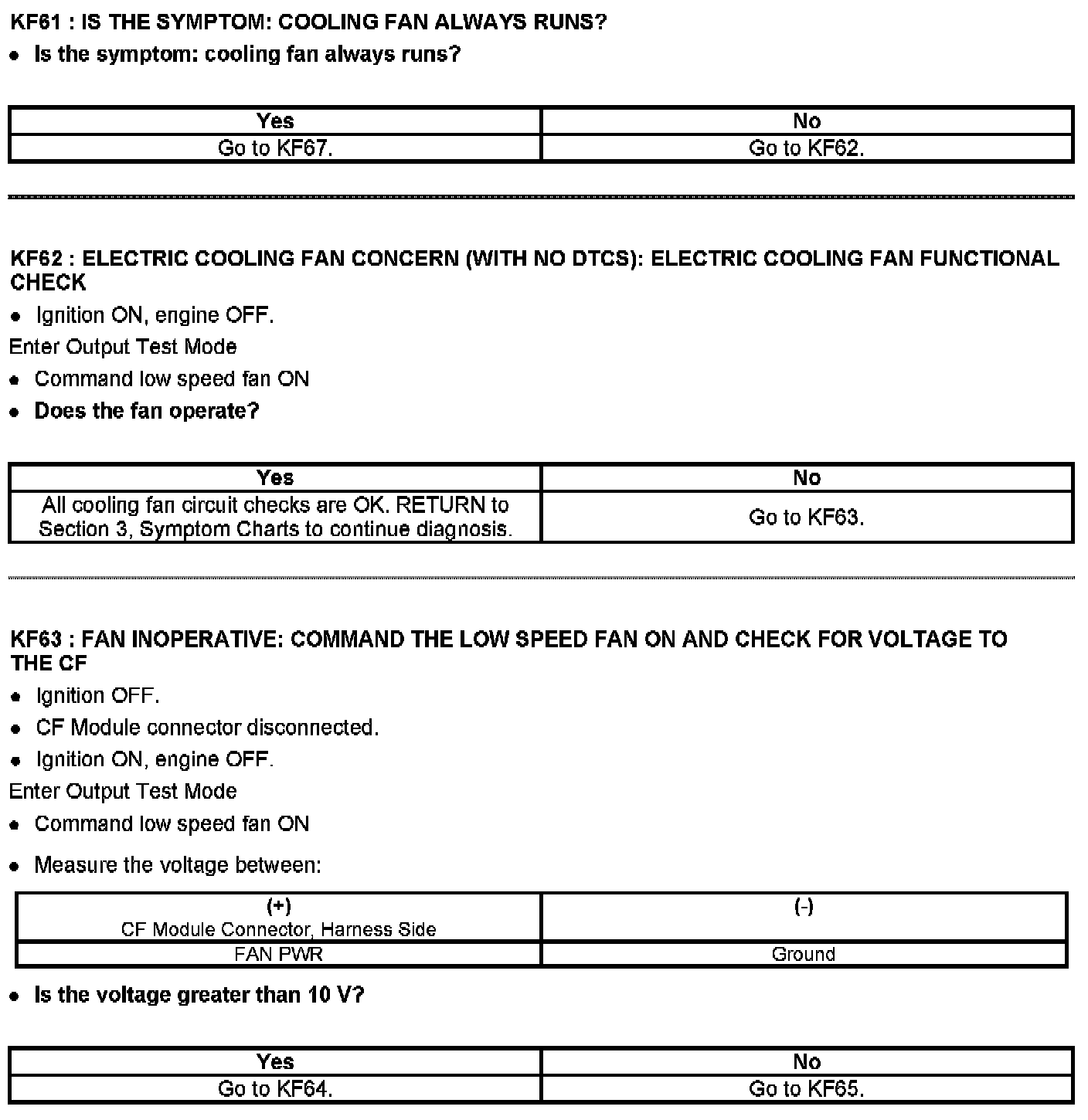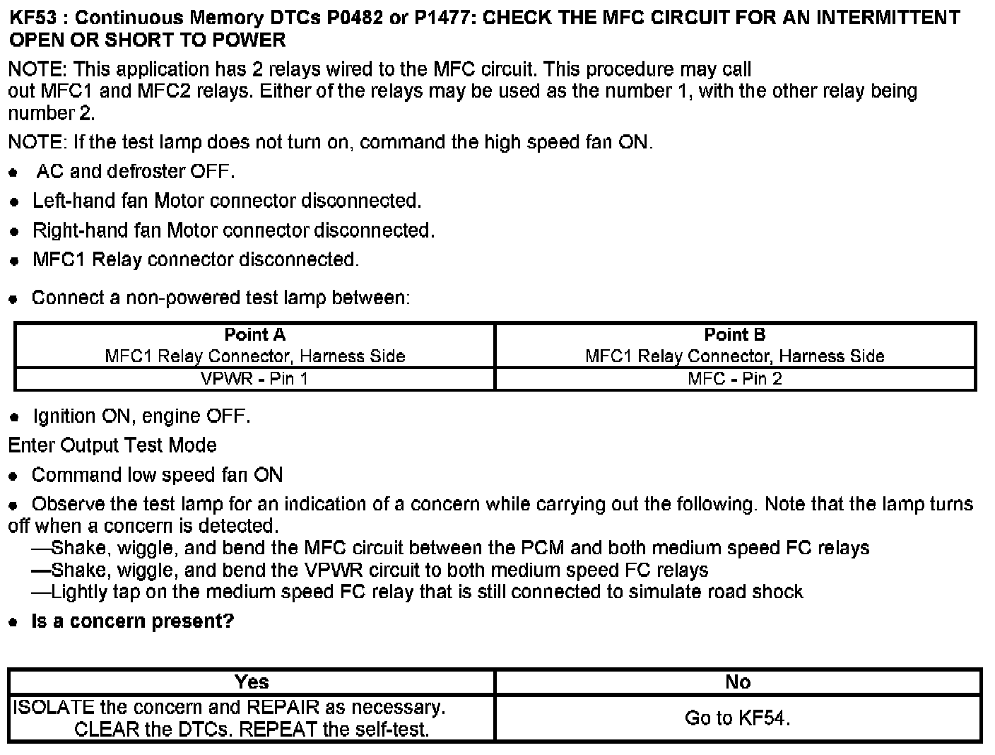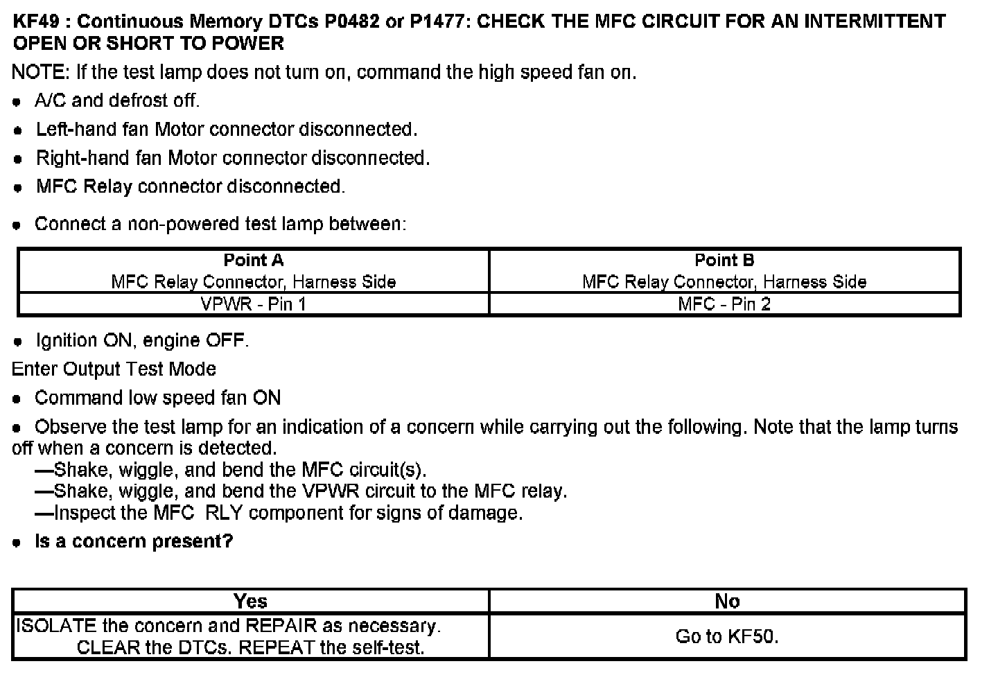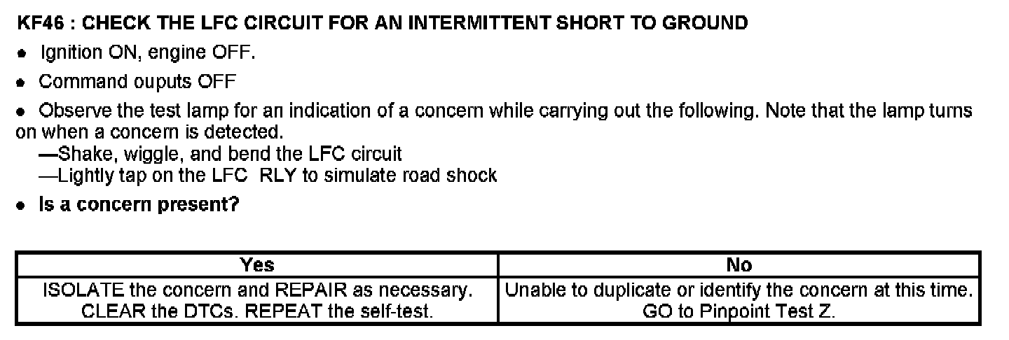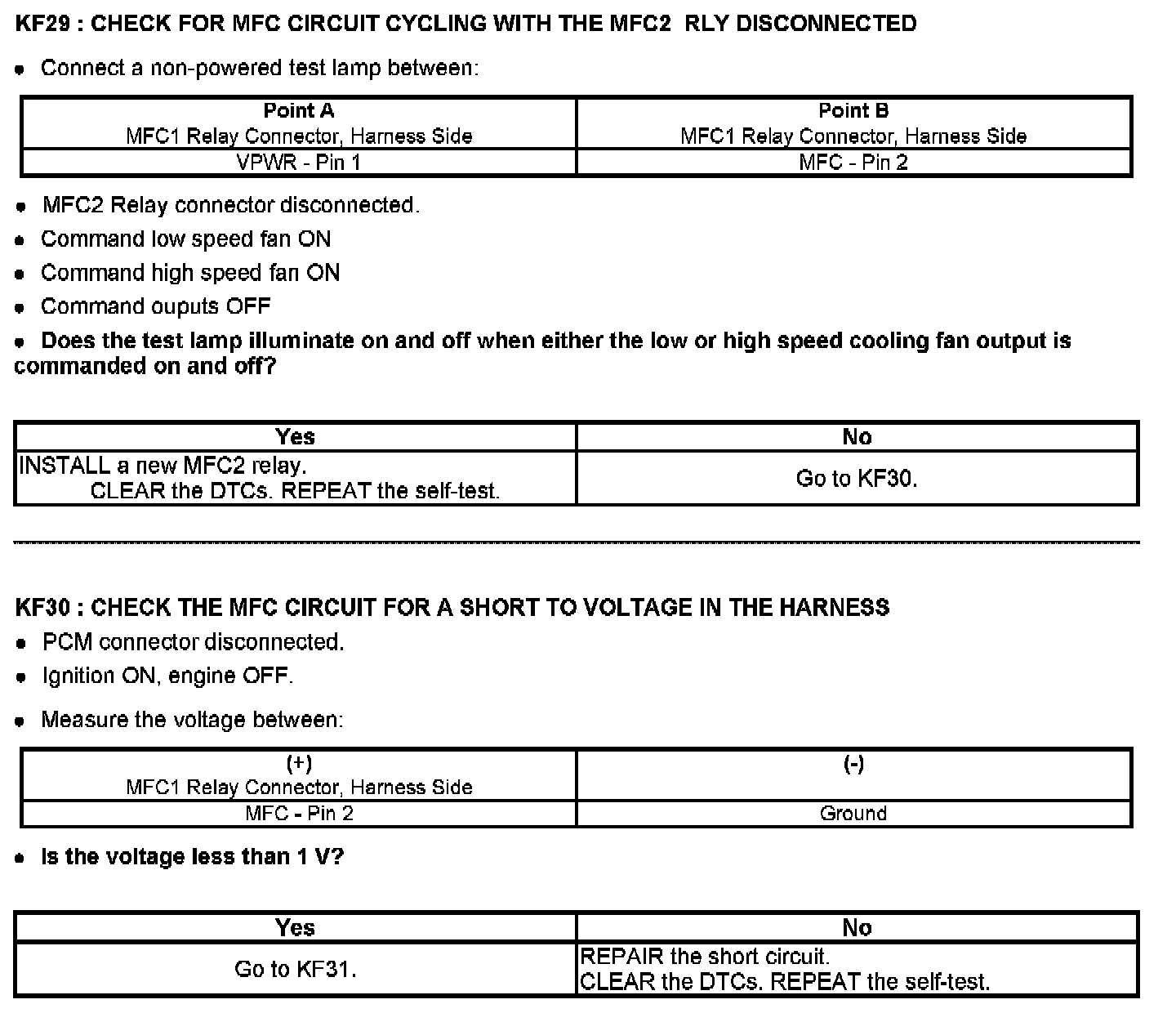 PINPOINT TEST KF: FAN CONTROL (FC) RELAYS