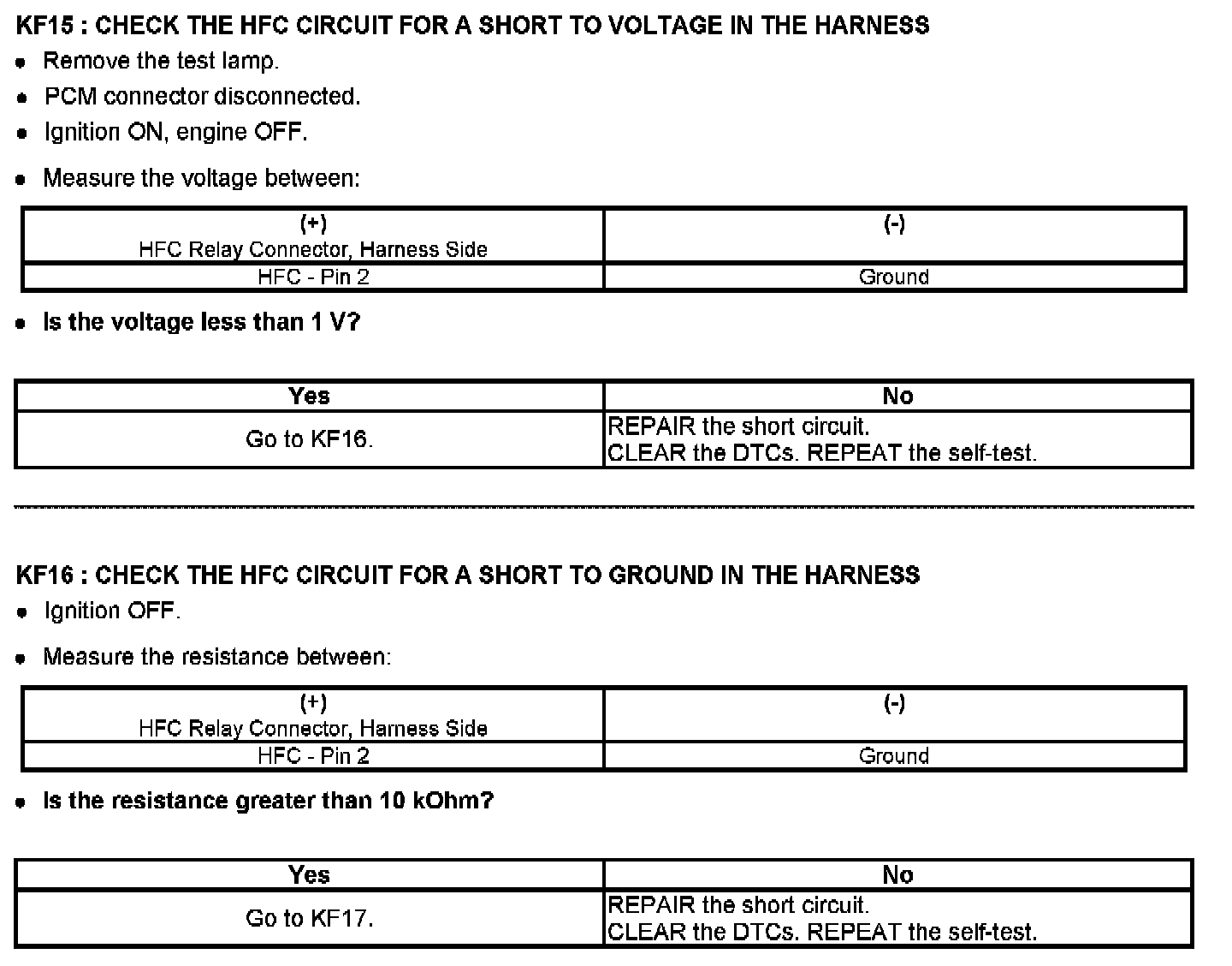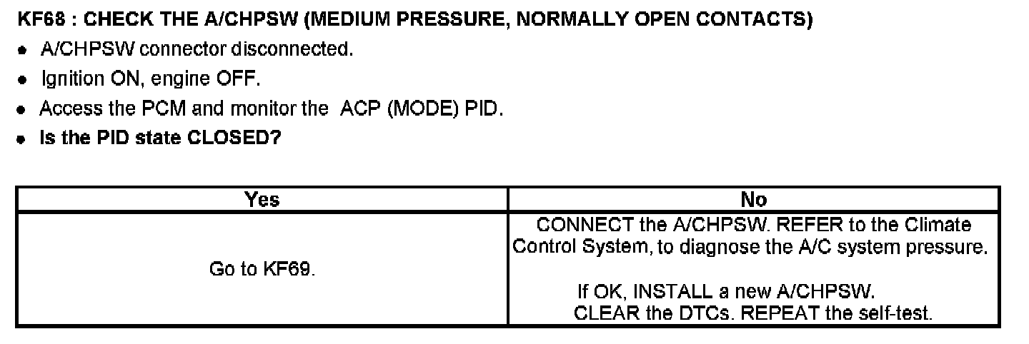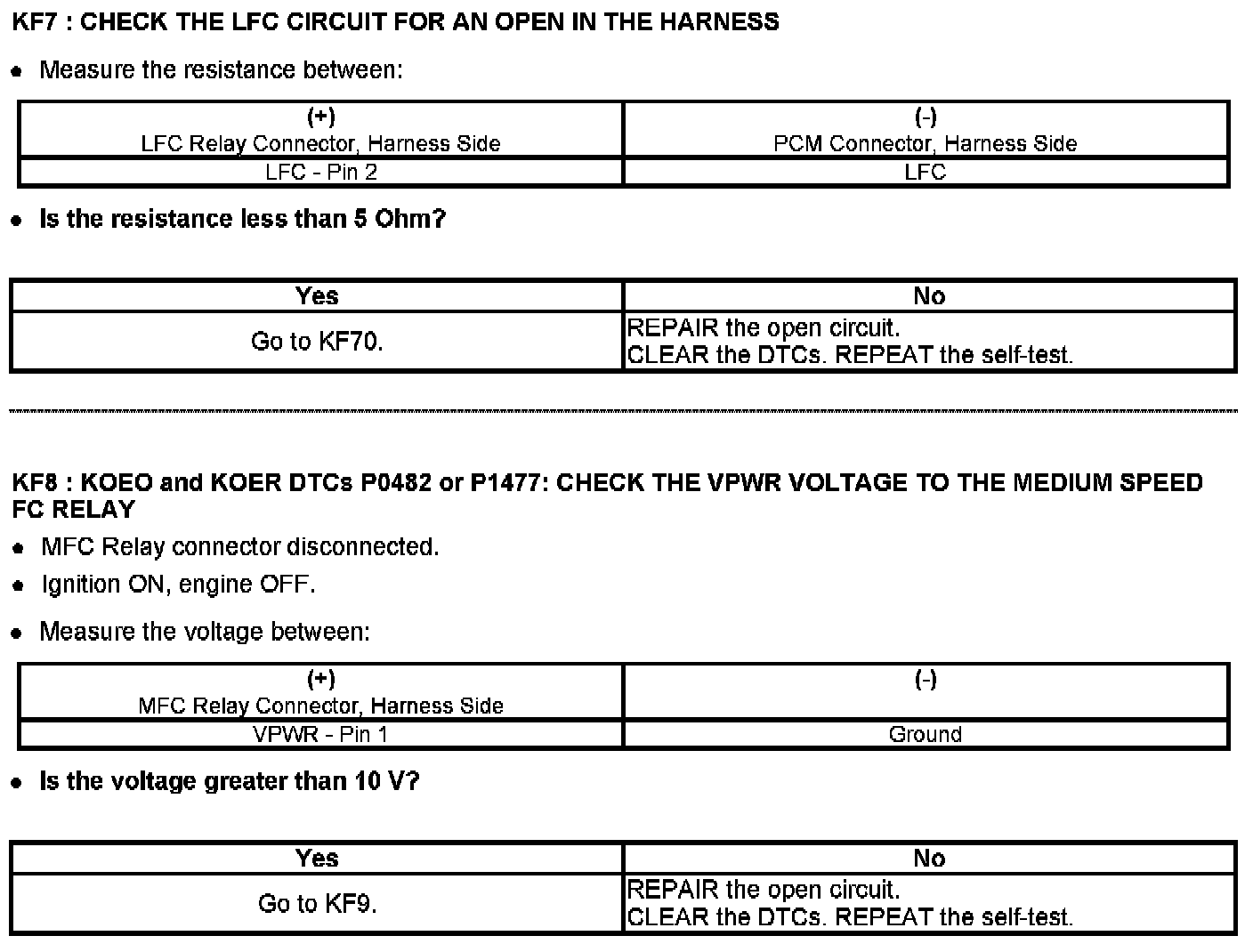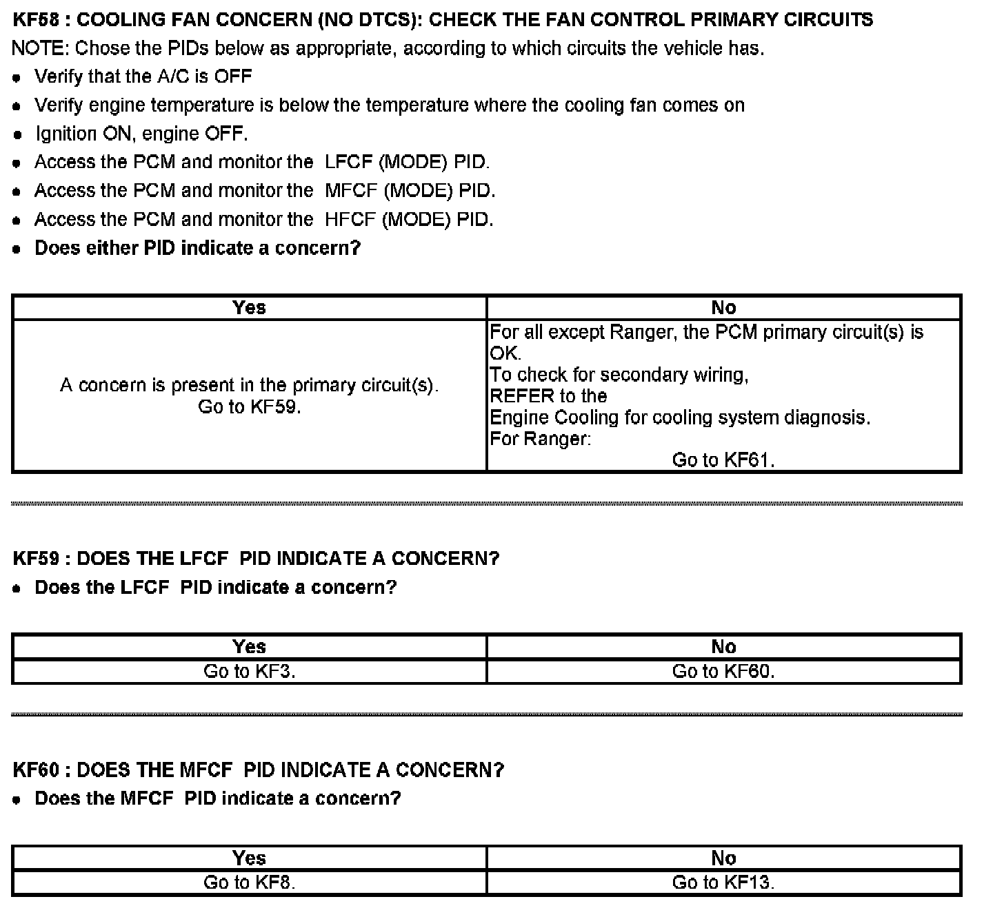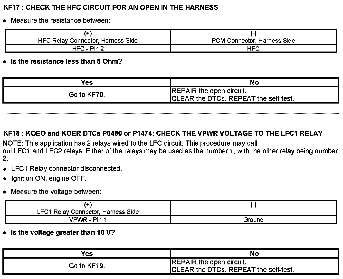 PINPOINT TEST KF: FAN CONTROL (FC) RELAYS