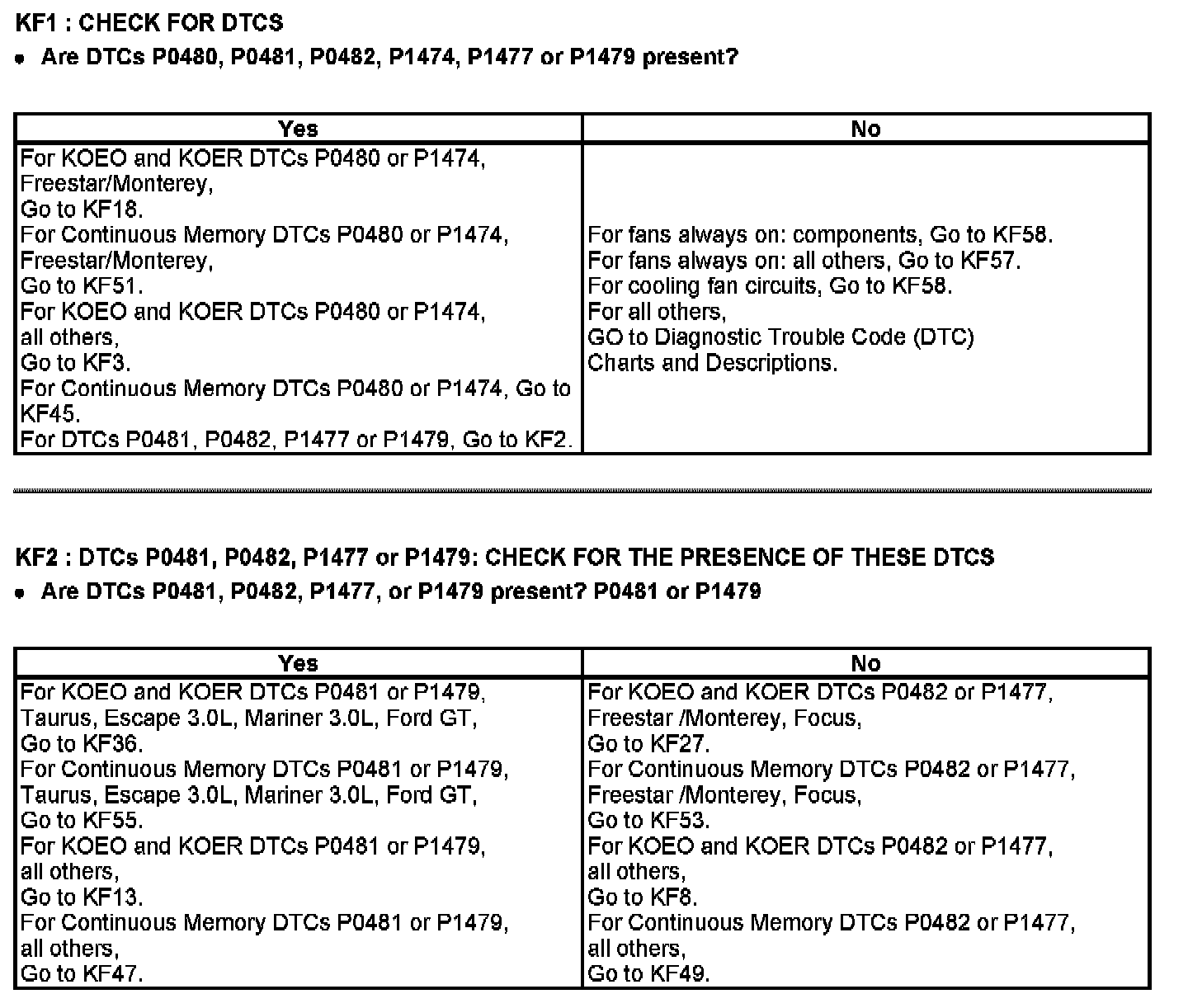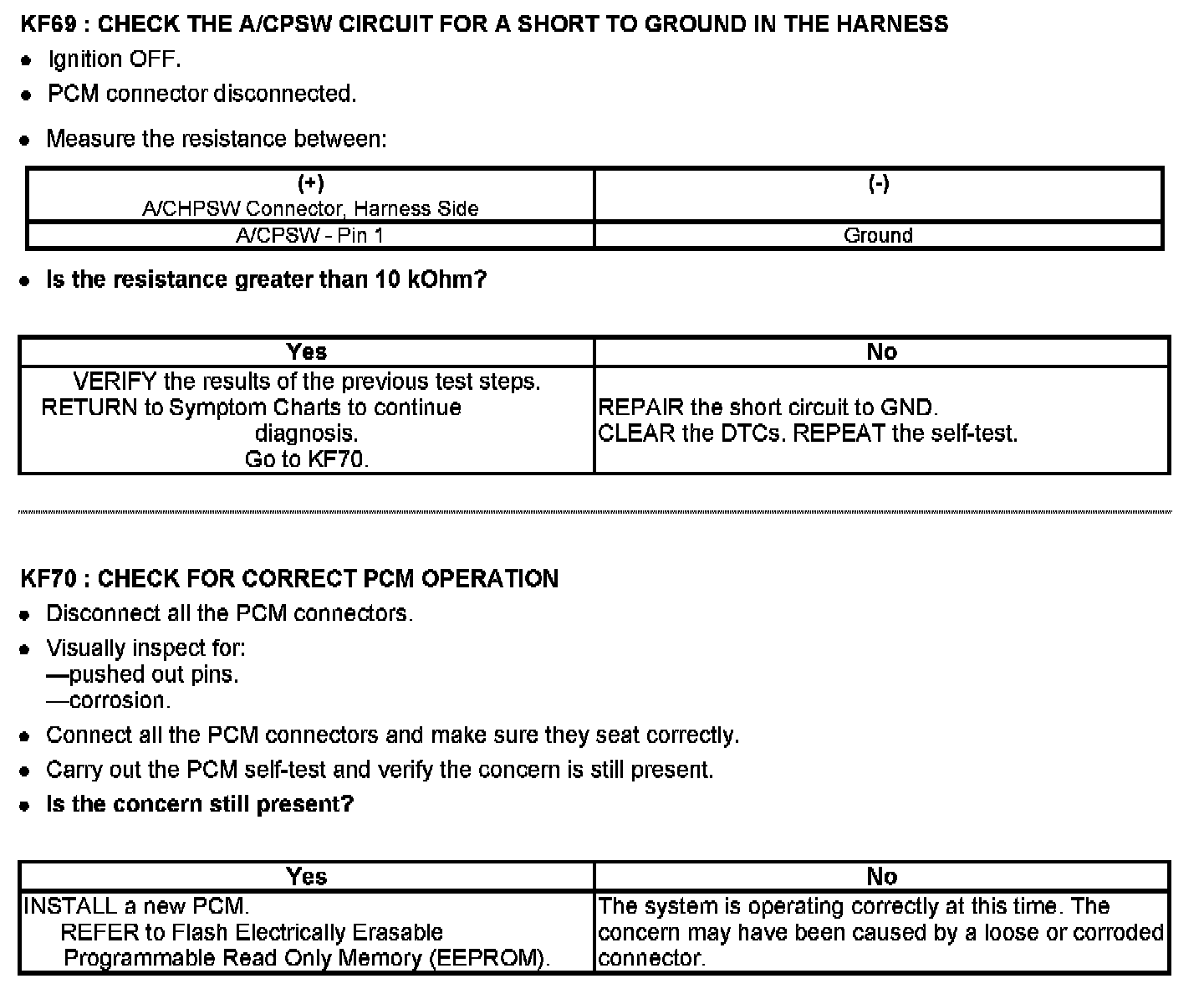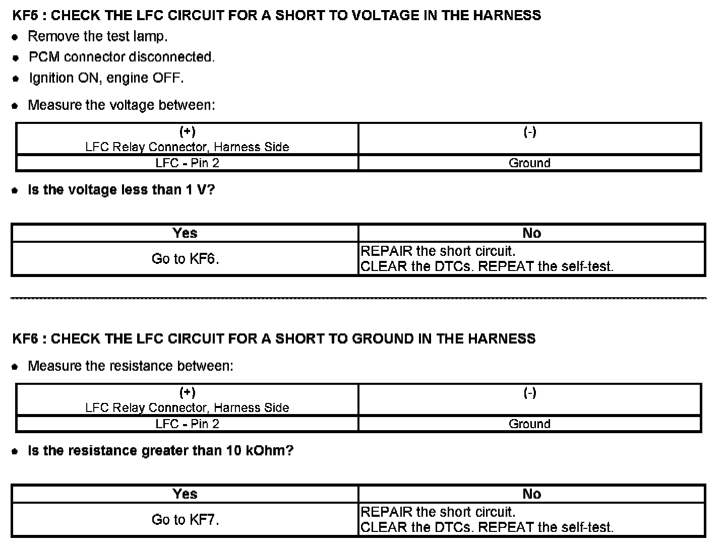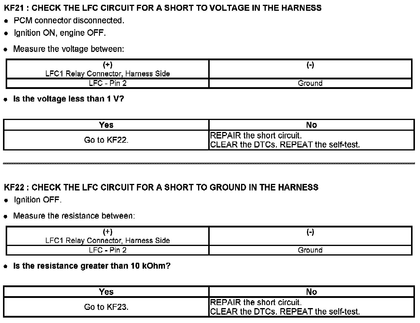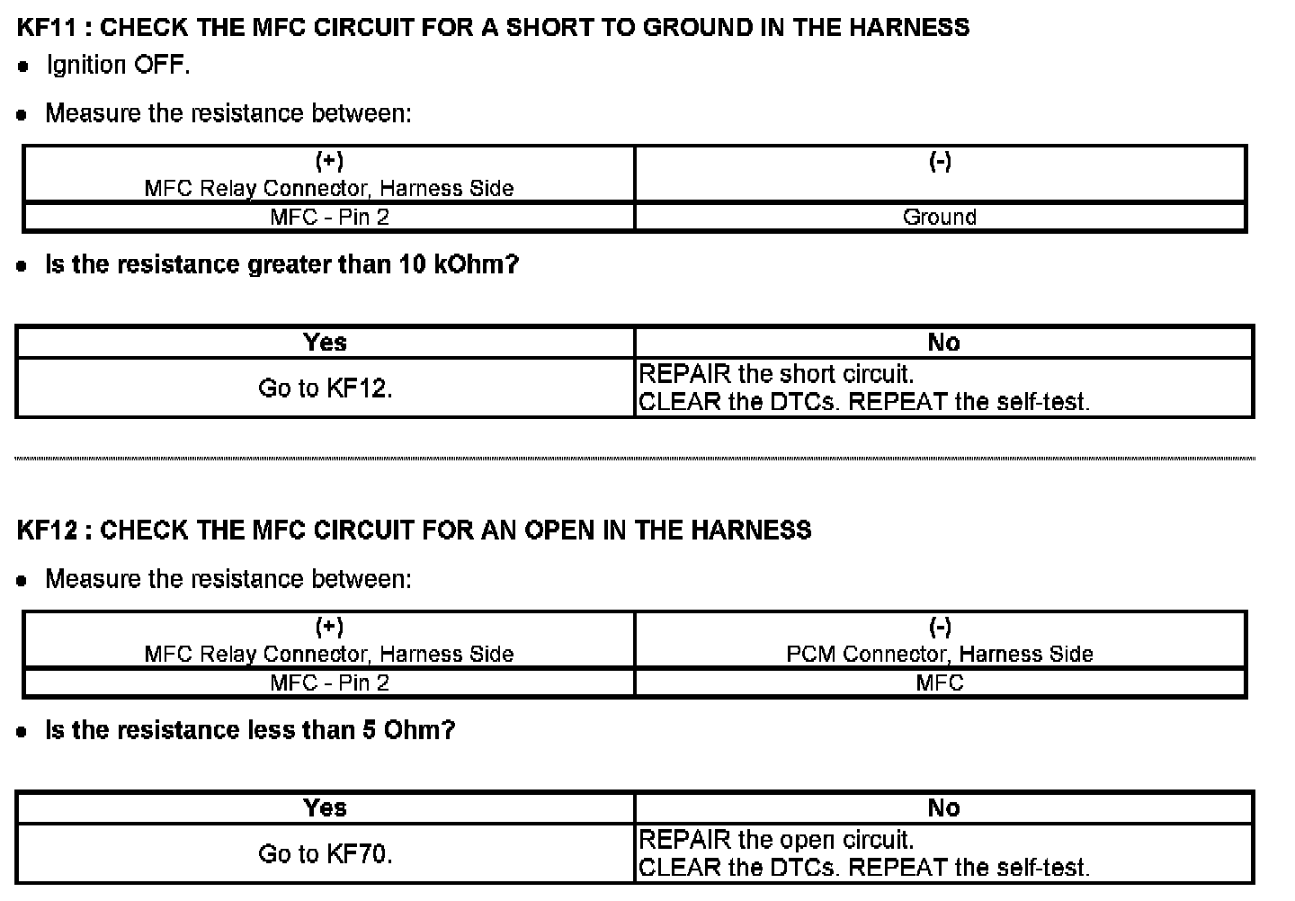 PINPOINT TEST KF: FAN CONTROL (FC) RELAYS