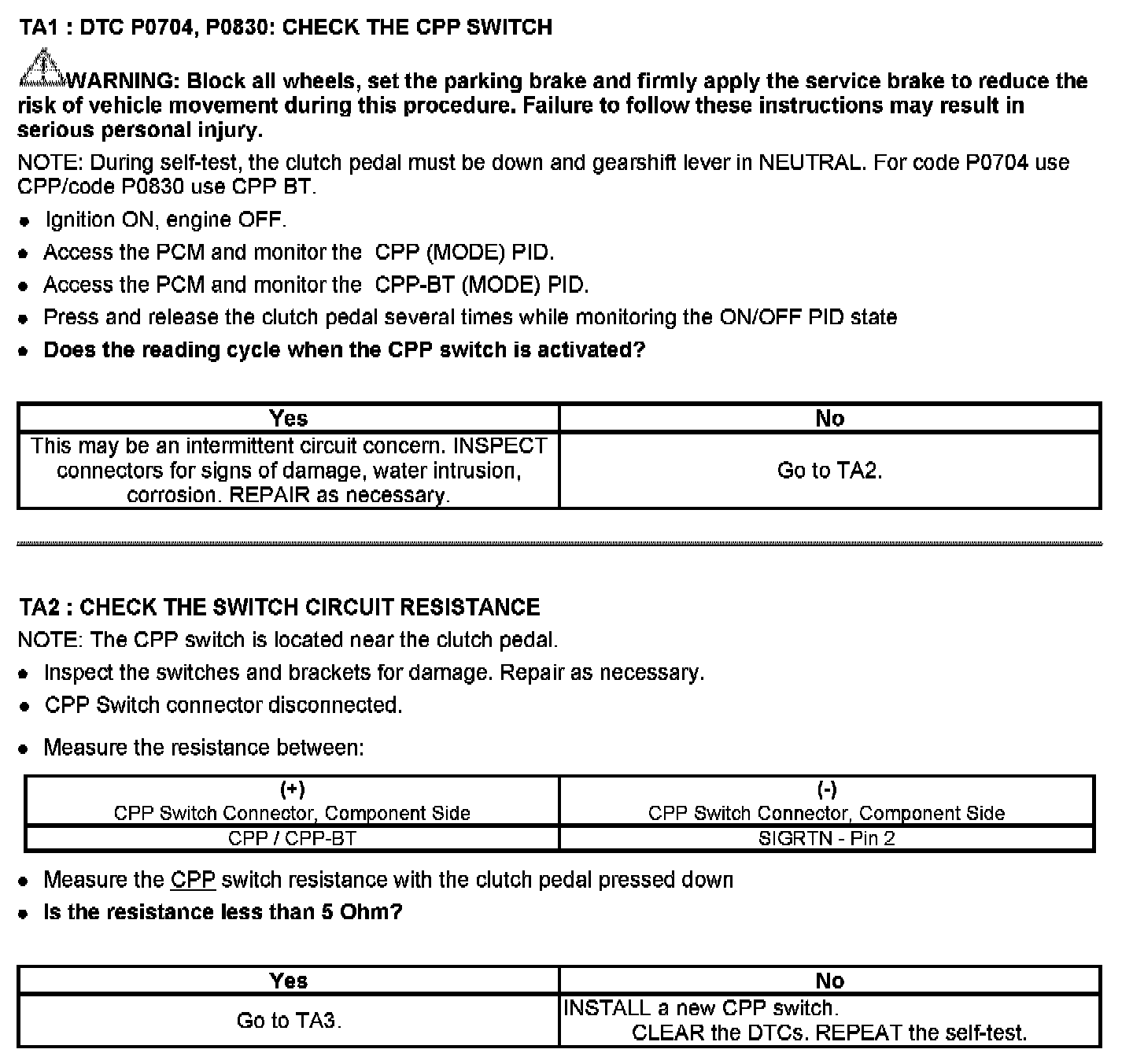 Tests TA: Clutch Pedal Position (CPP) Switch