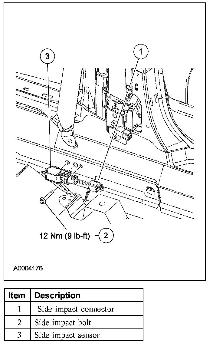 2. WARNING: The tightening torque of the air bag side impact sensor retaining bolt is critical for correct system operation.