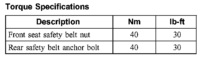 Torque Specifications:
