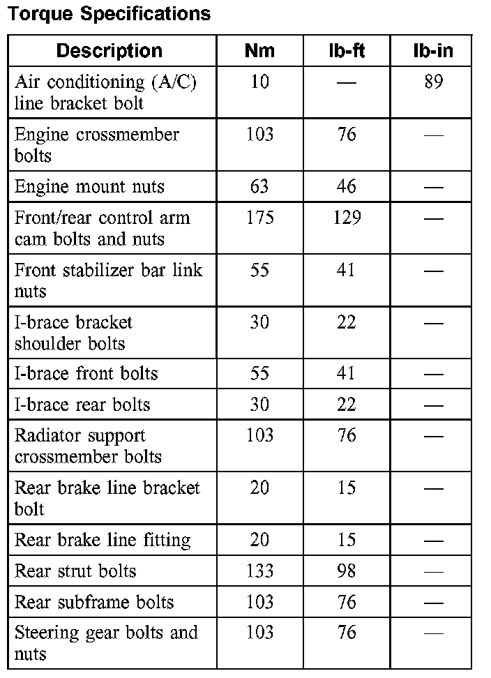 Torque Specifications: