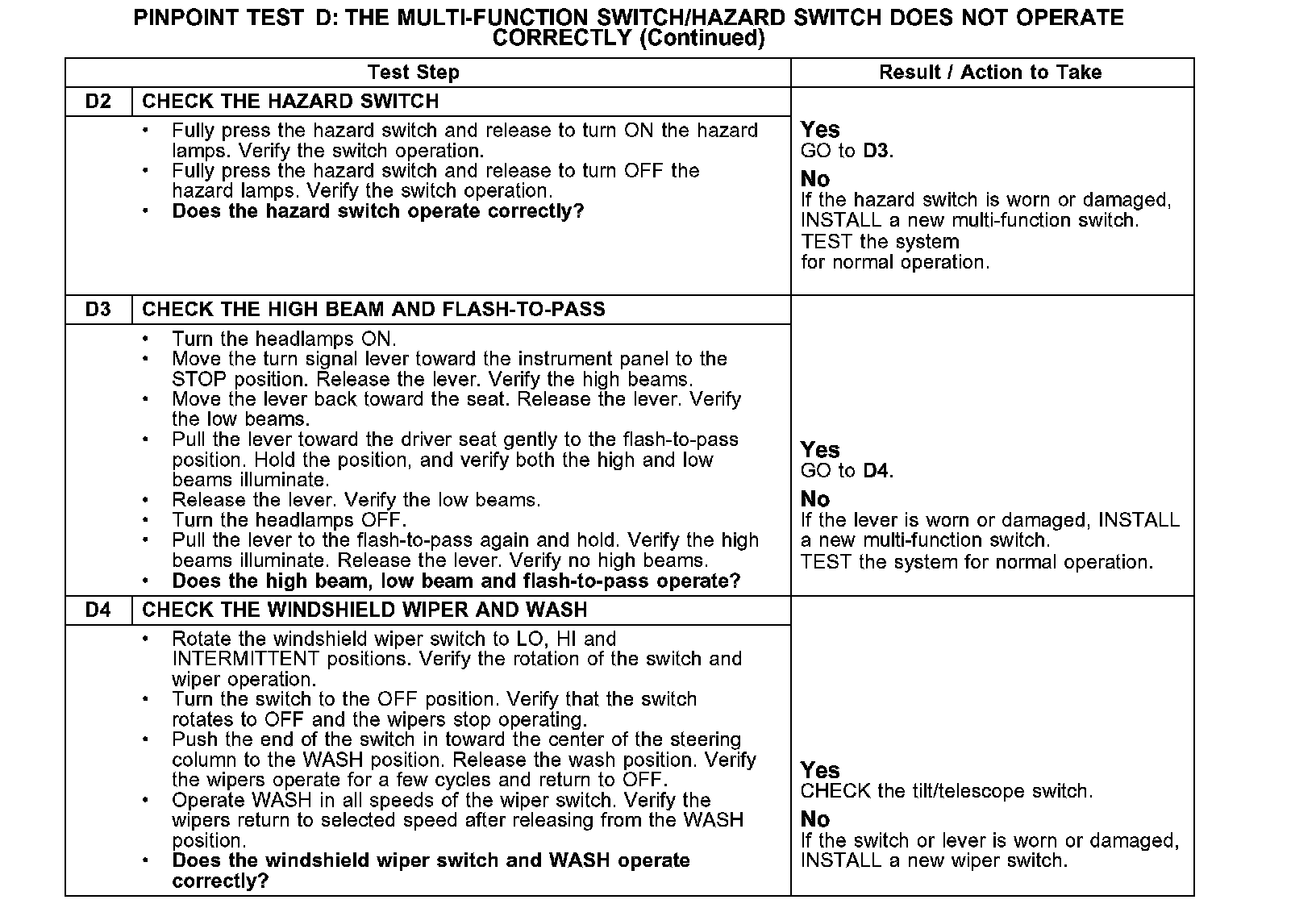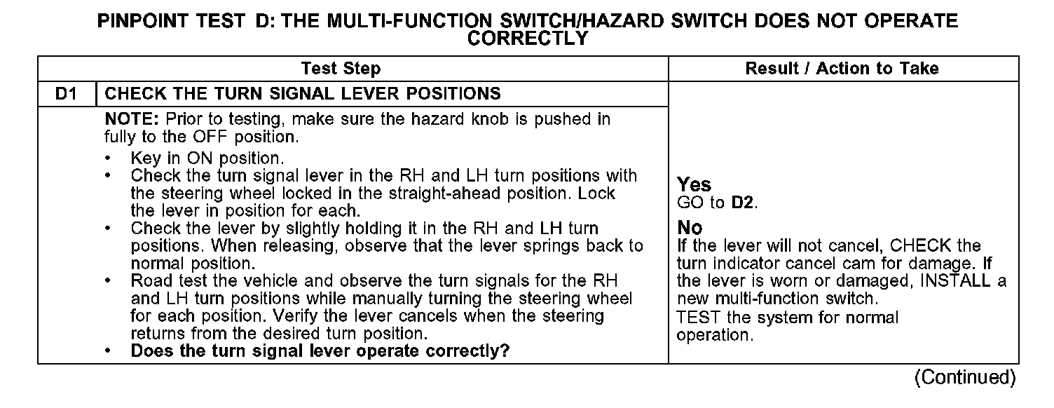 Test D: The Multi-Function Switch/Hazard Switch Does Not Operate Correctly