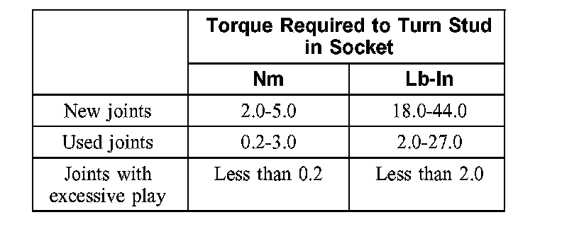 2 NOTE: Some joint turning torques will be as little as 0.2 Nm (2.0 inch lbs.) within the first 1,600 km (1,000 miles) and will remain there for the life of the joint.
