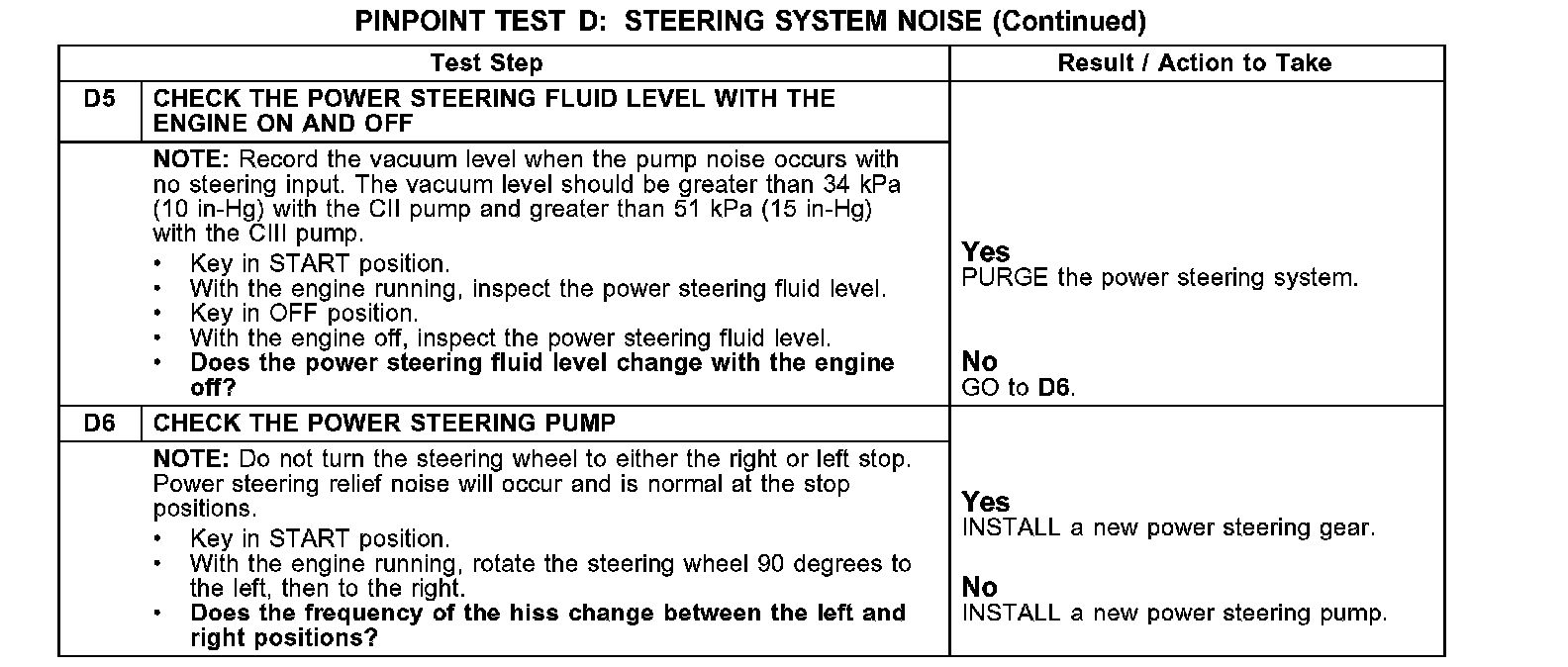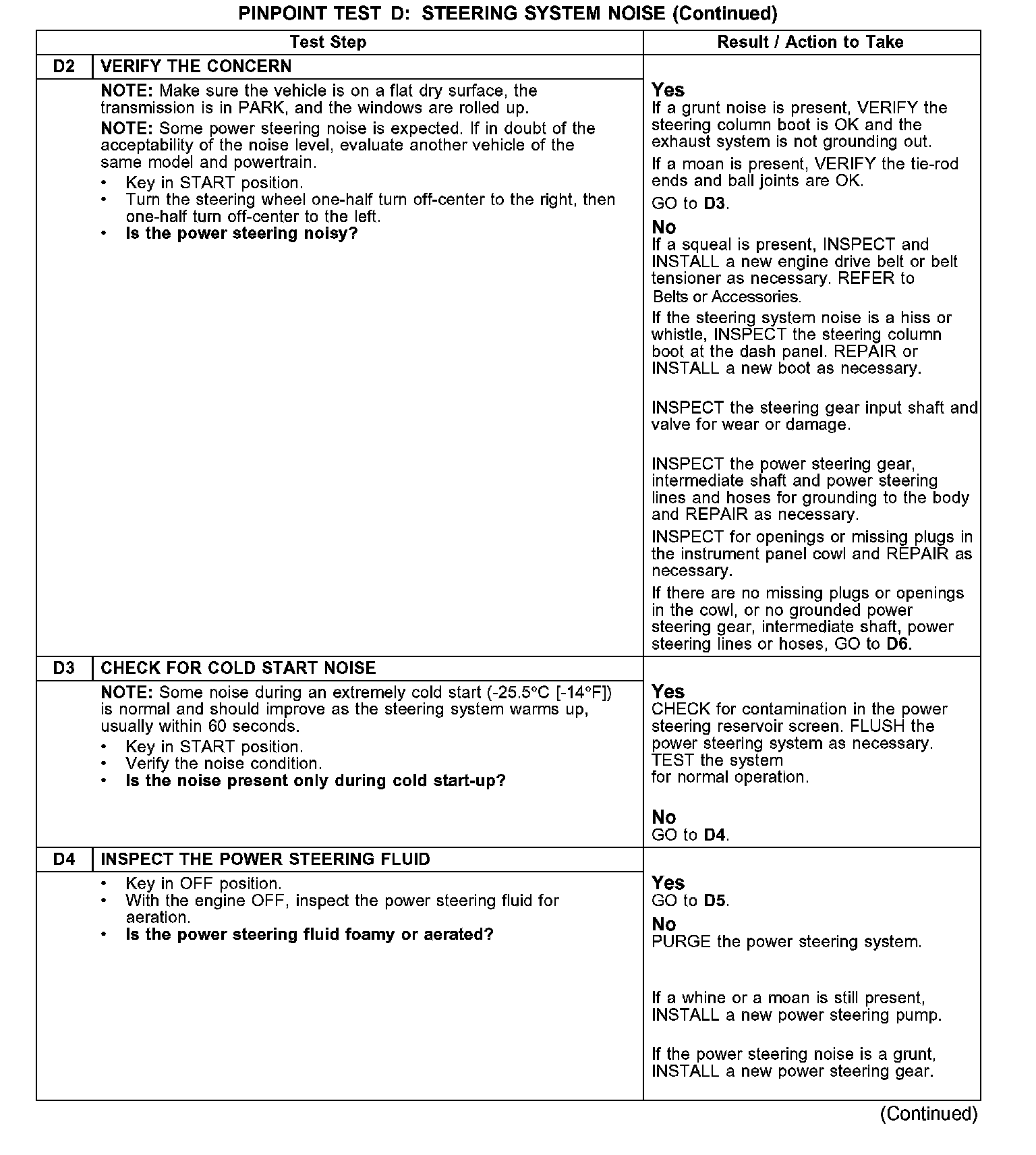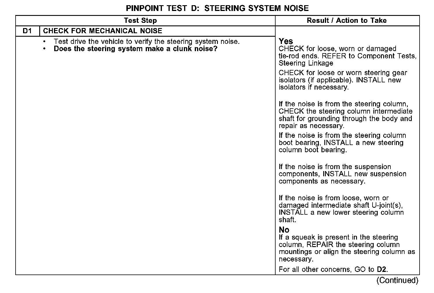 TEST D: STEERING SYSTEM NOISENormal Operation