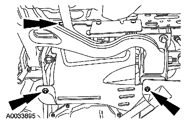 19. Position the rear transmission crossmember and install the transmission crossmember-to-floor pan screws.