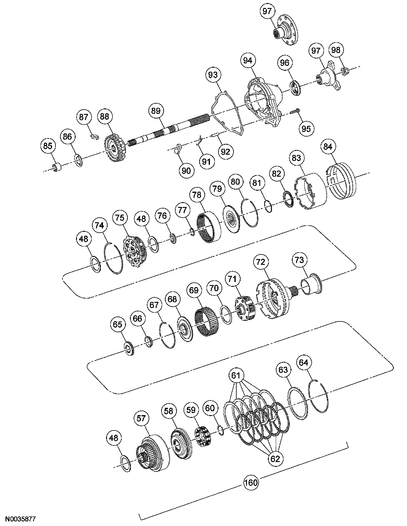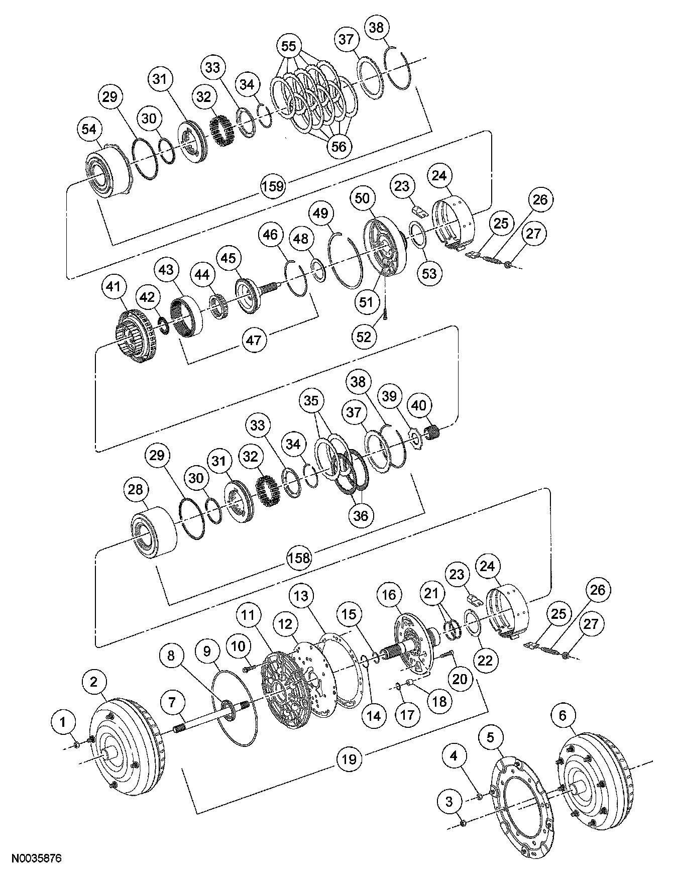 31. NOTE: The No. 13 bearing must be correctly seated in the forward planet assembly so the sun gear can be installed correctly.