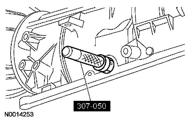 12. CAUTION: Use care not to damage the fluid pan rail surface when installing the retaining pin.