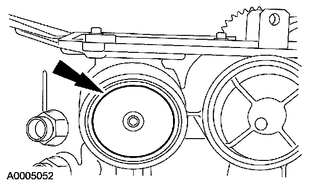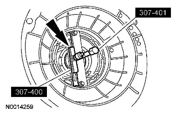 1 Install the special tool and the bolts using the 2 pump screw locations at approximately 6 and 12 o'clock positions.