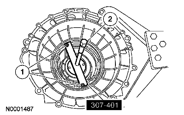 In order to correctly install the special service tool, it must be installed using one round and one oblong hole. Using 2 oblong holes will cause damage to the transmission.