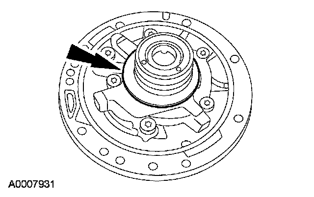 1 Make sure the center support retaining ring is installed with the tapered side facing up.