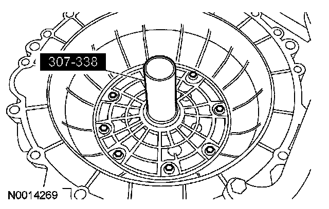 96. CAUTION: Inspect the transmission case bore to make sure it is free of foreign material and not damaged. If damaged, a transmission leak may occur.