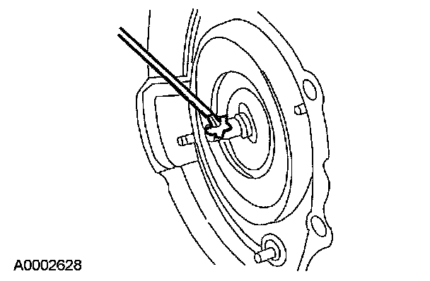 CAUTION: If the torque converter slides out, the hub seal may be damaged.