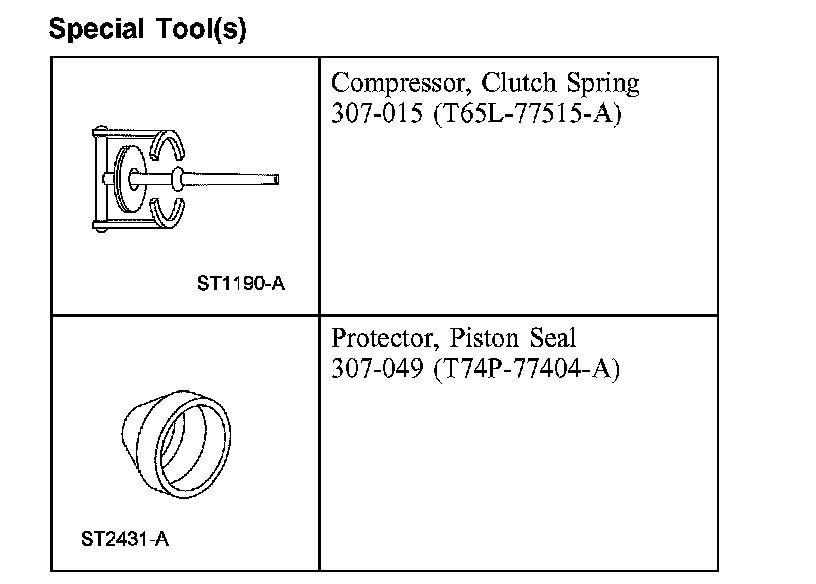 5. CAUTION: Do not fully compress the special tool or damage to the coast clutch piston spring retainer may occur.