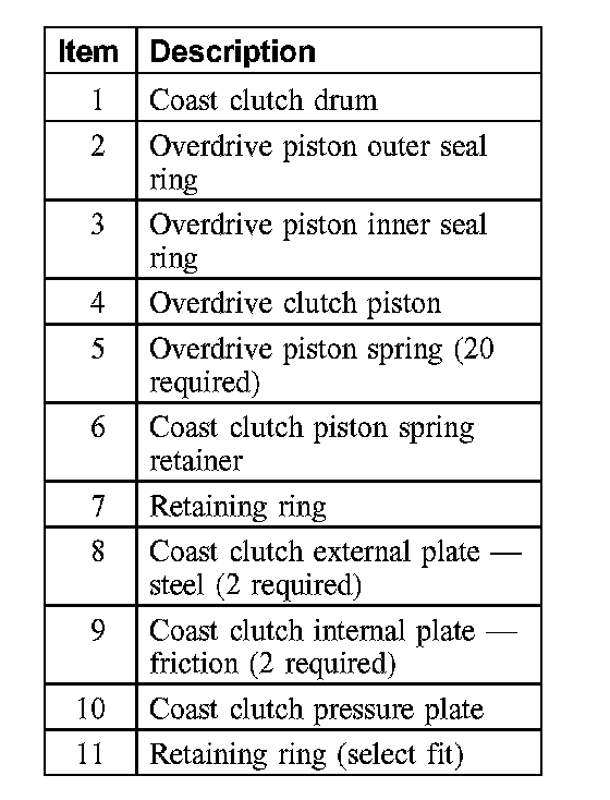 2. Remove the coast clutch disc pack. Inspect for wear, install a new pack as necessary.