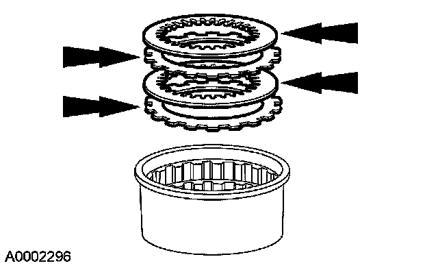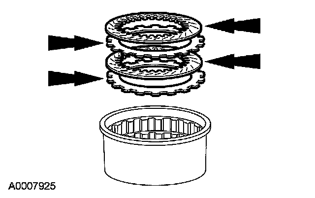 7. Install the 2 steel clutch plates and 2 friction clutch plates in alternating order starting with a steel clutch plate.