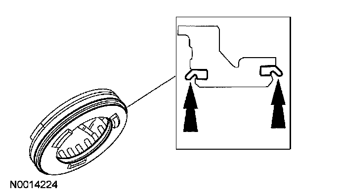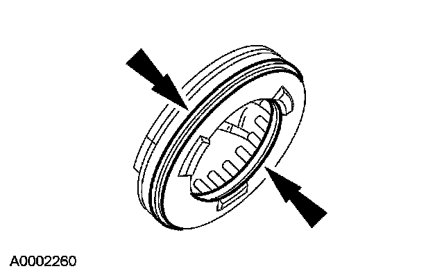 7. Remove and discard the coast clutch piston inner seal and the coast clutch piston outer seal.