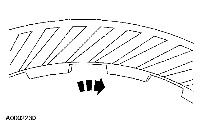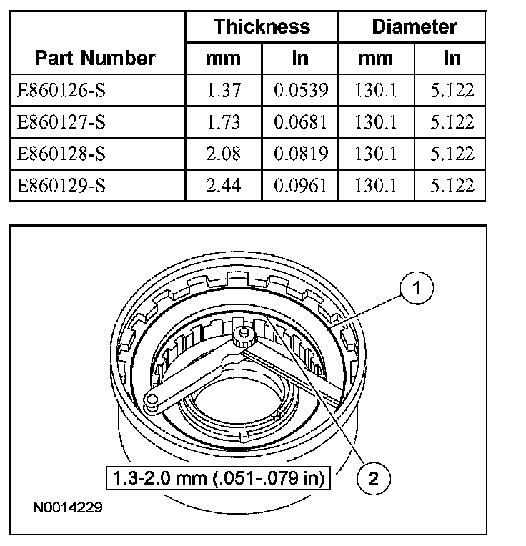2 Check clearance between the coast clutch retaining ring and coast pressure plate. Clearance should be 1.3 - 2.0 mm (0.051 - 0.079 inch). If clearance is not within the specification, install a correct coast clutch retaining ring that will provide the correct free play adjustment.