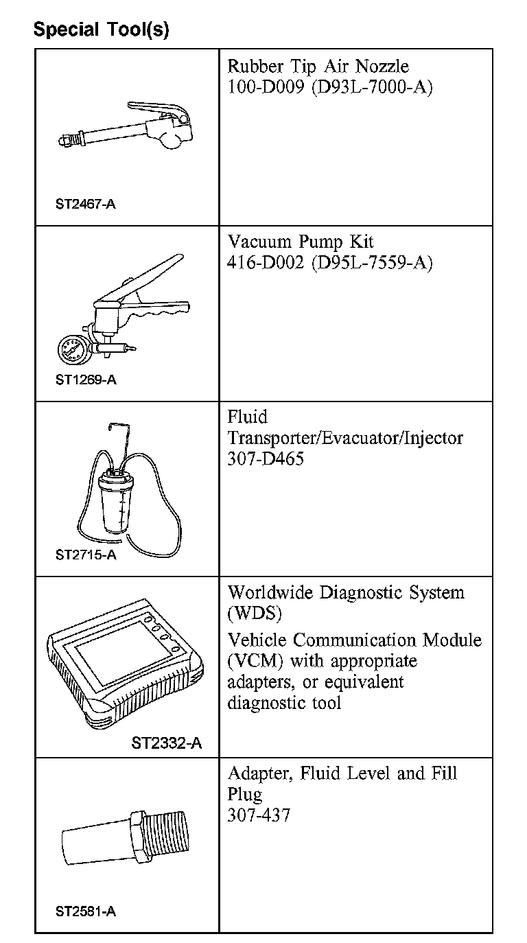 9. NOTE: Prior to filling the special tool with clean transmission fluid, make sure that the canister is clean.
