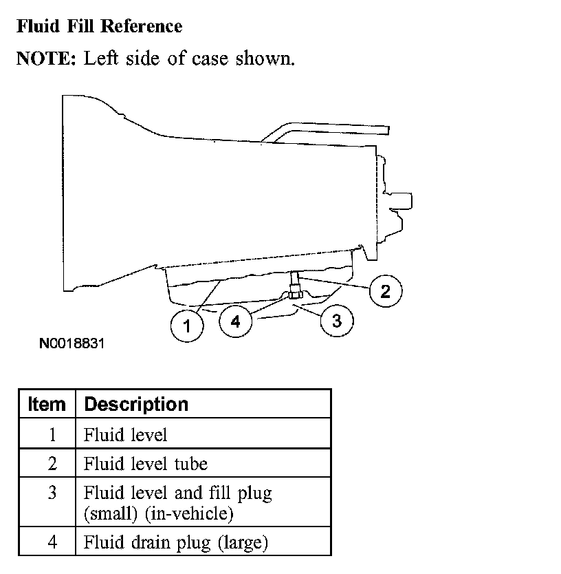 16. Allow the fluid to drain. Make sure that the fluid temperature is between 27°C - 49°C (80°F - 120°F). When the fluid comes out as a thin stream or drip, the fluid is at the correct level.